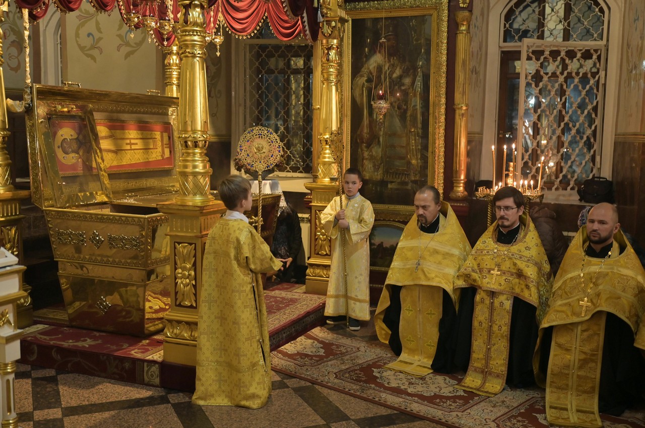 2 ноября 2025 года вечернее богослужение с традиционным пением акафиста святителю митрополит Иркутский и Ангарский Максимилиан совершил в Знаменском монастыре г. Иркутска в сослужении клириков Первого Иркутского городского благочиния (благочинный округа - священник Стефан Бажков).