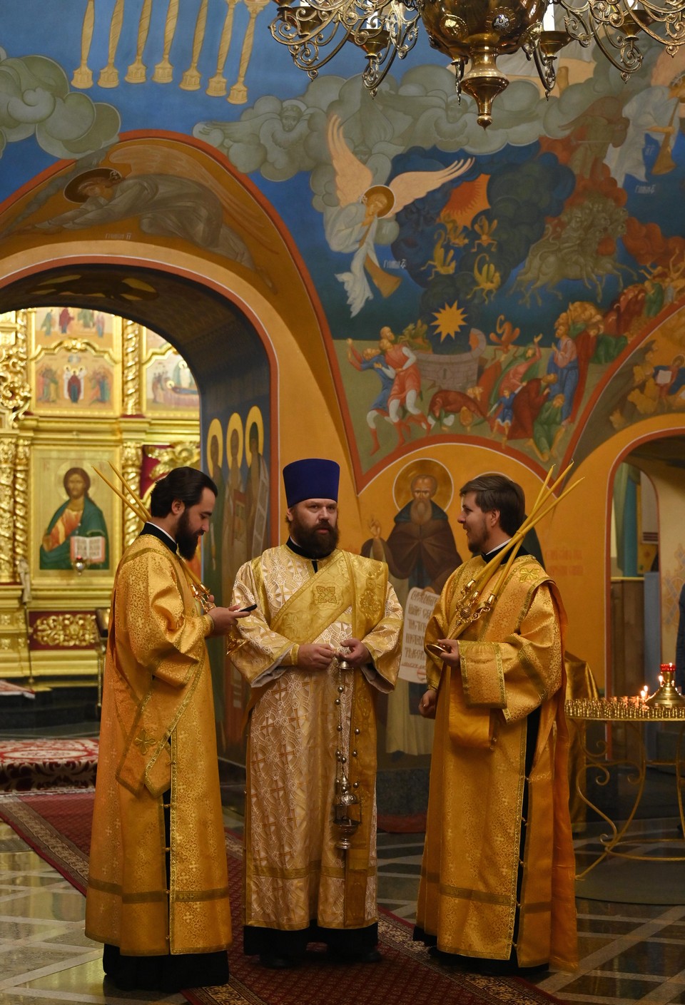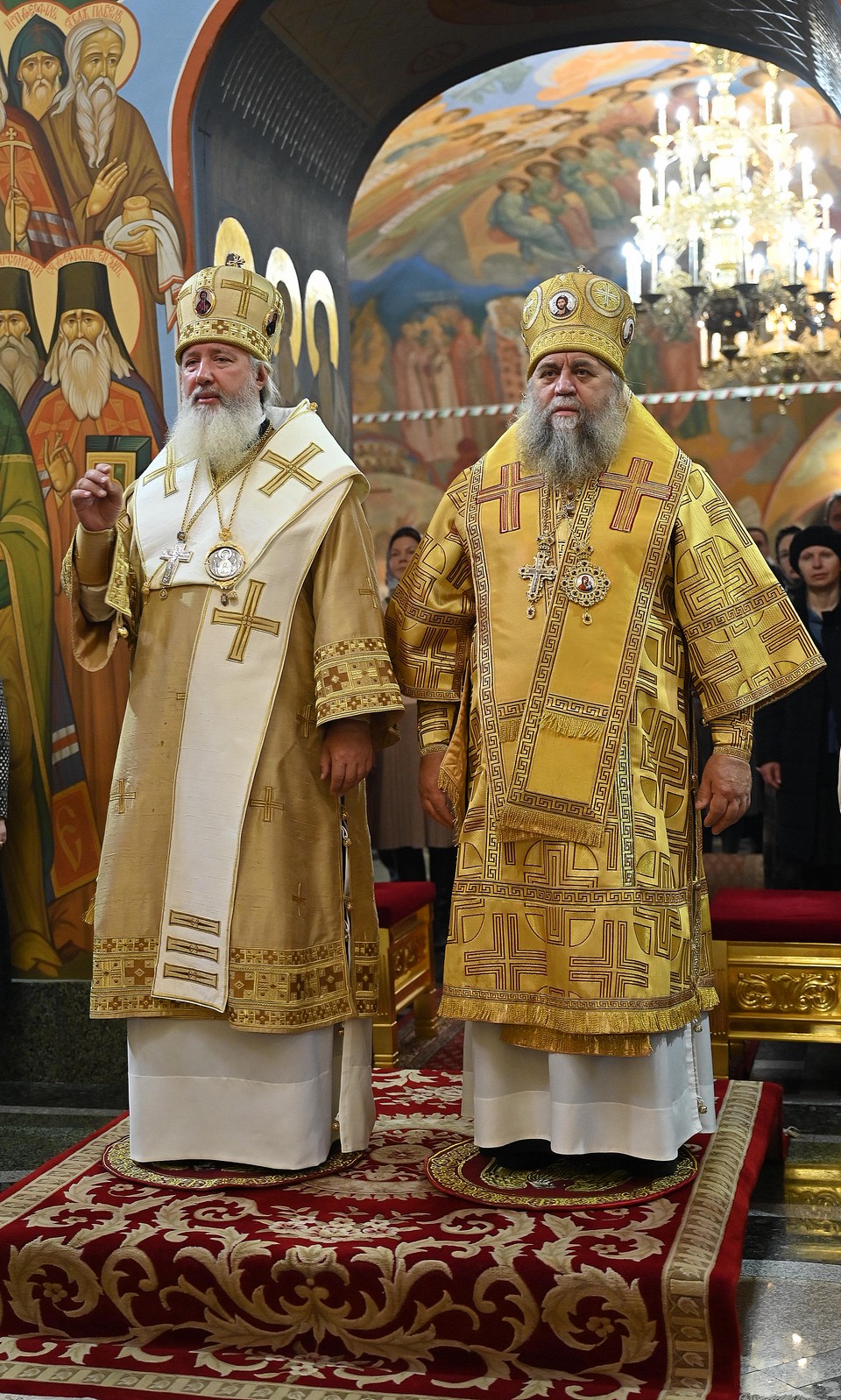 Высокопреосвященнейшим владыкам сослужили клирики собора: секретарь Иркутской епархии и ключарь храма священник Стефан Бажков, священник Евгений Копытов, священник Вячеслав Куприянов, протодиакон Димитрий Бухаров и диаконы Петр Новоселов и Владимир Соколов.
