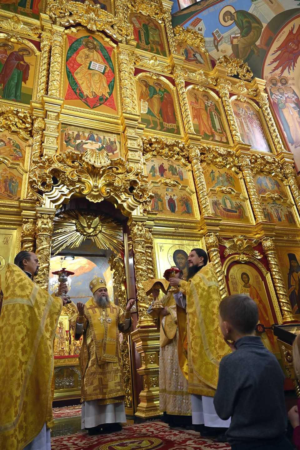 Божественную литургию в Воскресный день 9 ноября 2025 года, в Неделю 22-ю по Пятидесятнице, в Богоявленском кафедральном соборе совершили два архиерея: митрополит Иркутский и Ангарский Максимилиан и епископ Братский и Усть-Илимский Константин.