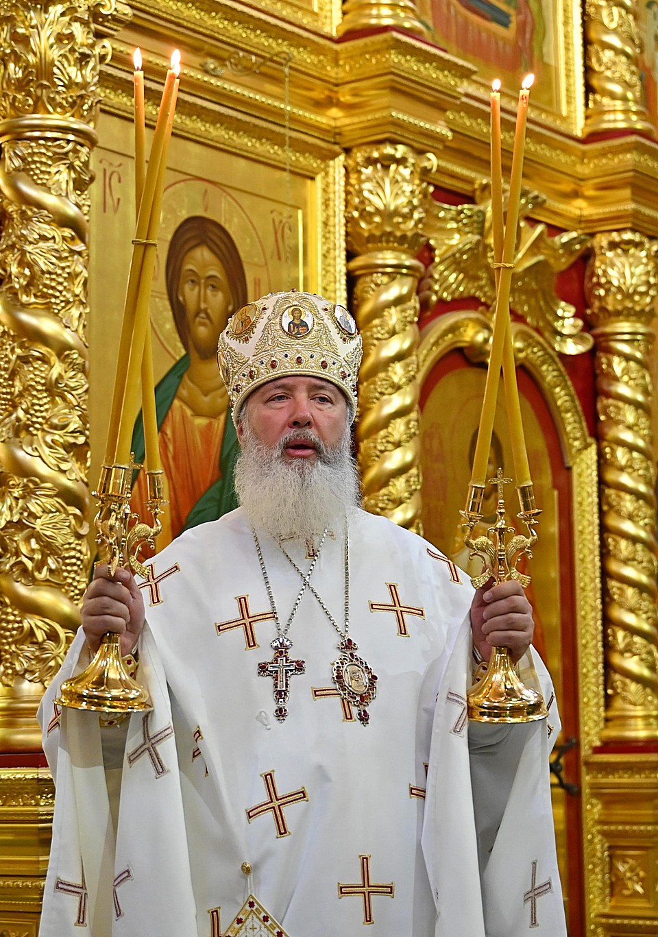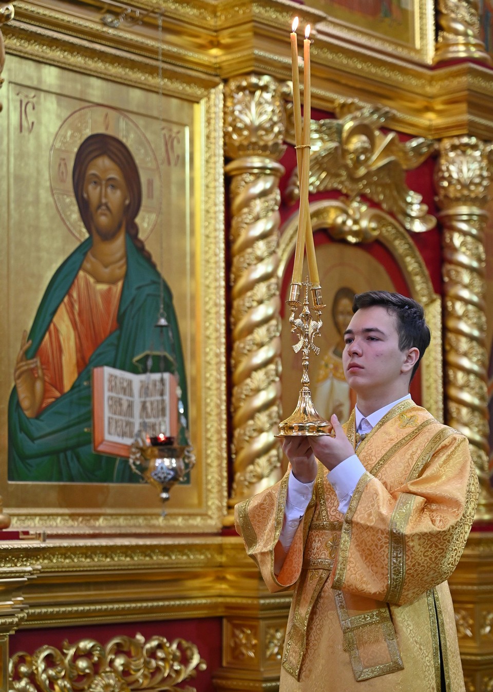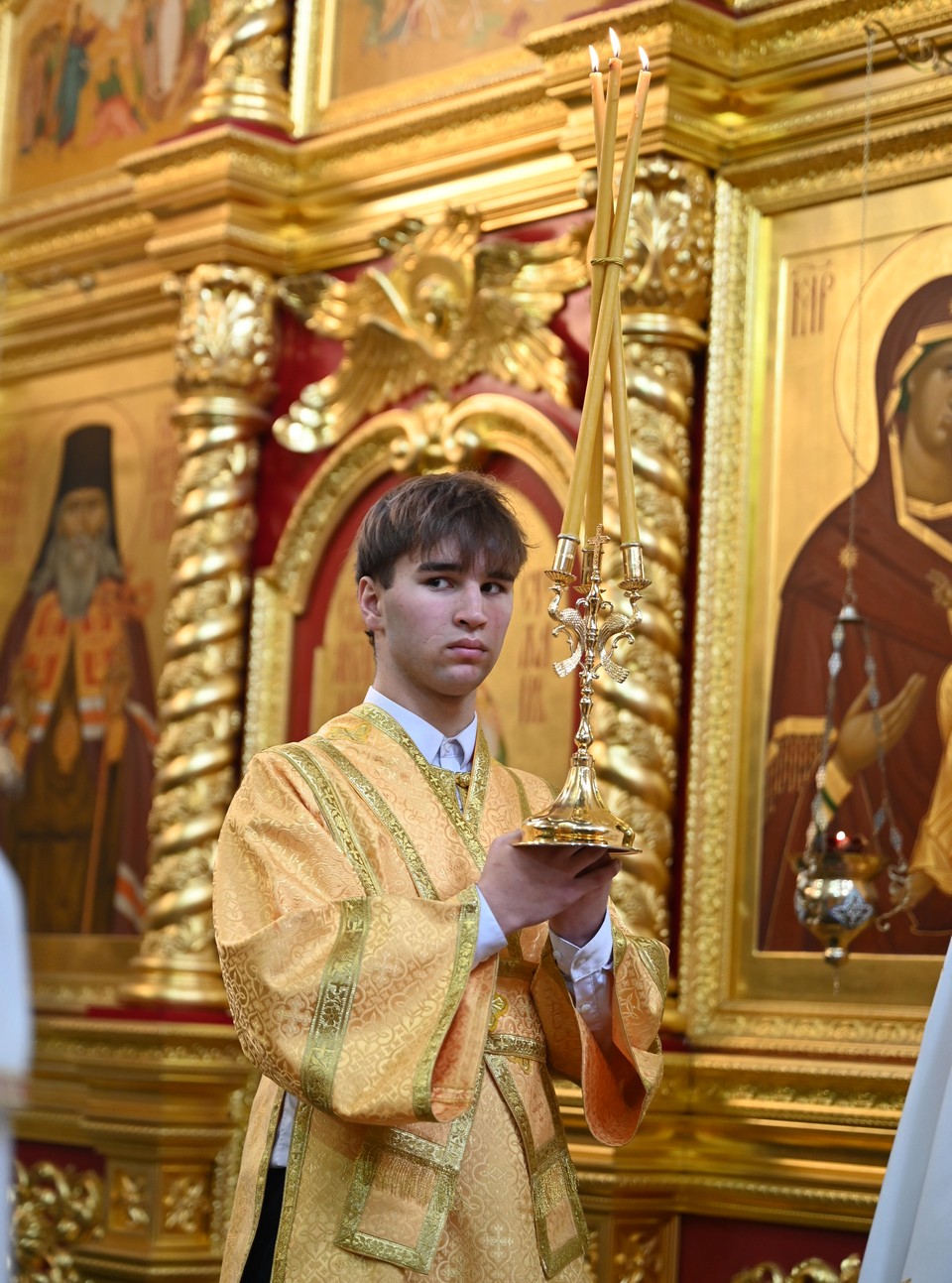 Воскресная Божественная литургия архиерейским служением состоялась 23 ноября 2025 года, в Неделю 24-ю по Пятидесятнице в Богоявленском кафедральном соборе.
