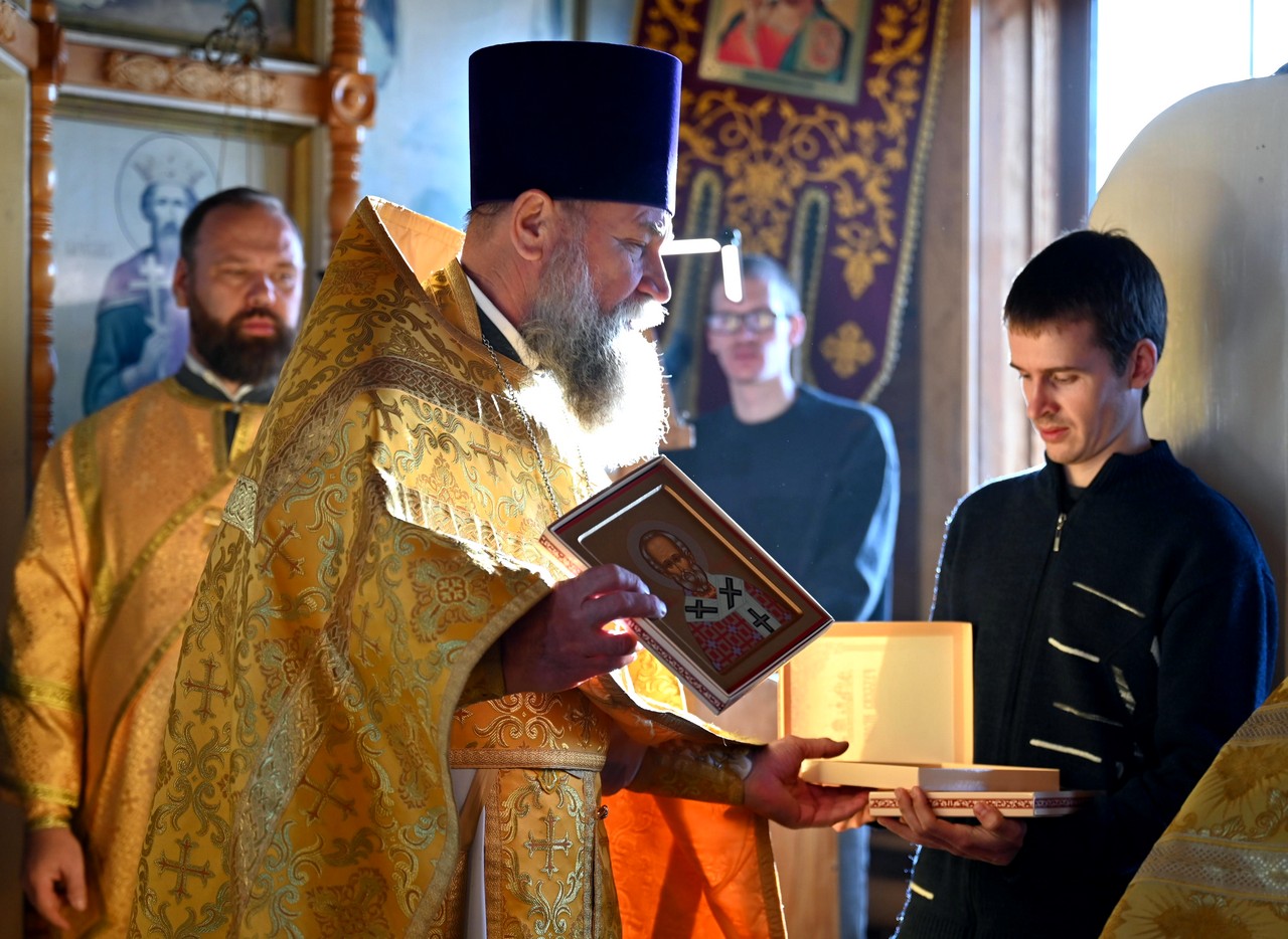 Также правящий архиерей выразил сердечную благодарю настоятелю храма священнику Сергию Калашникову за активную деятельность по восстановлению храма после давнего пожара и вручил благословенные архиерейские грамоты благотворителям, благодаря помощи которых была выстроена новая просторная приходская трапезная: Всеволоду Владимировичу Черепанову и Андрею Олеговичу Татаринову.