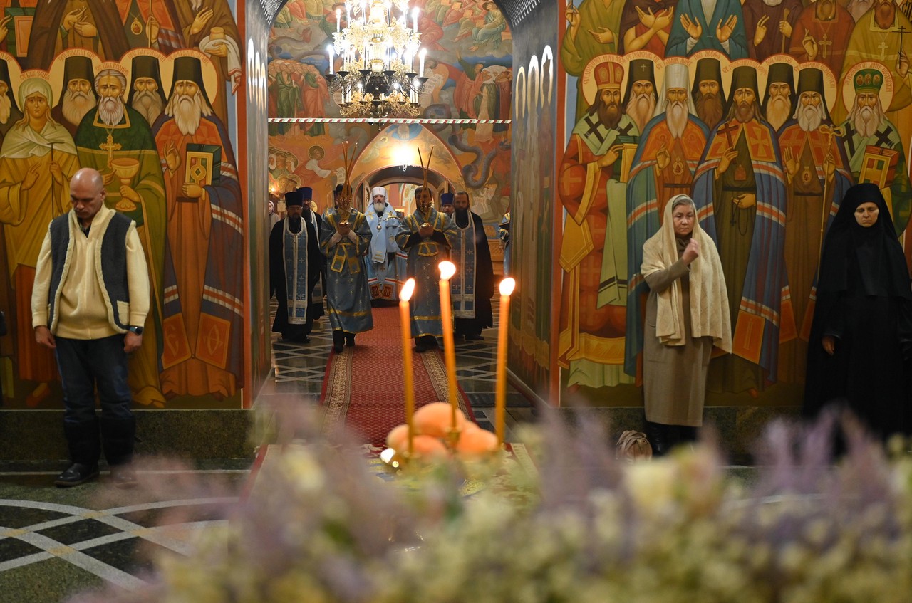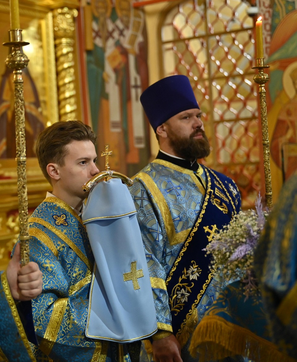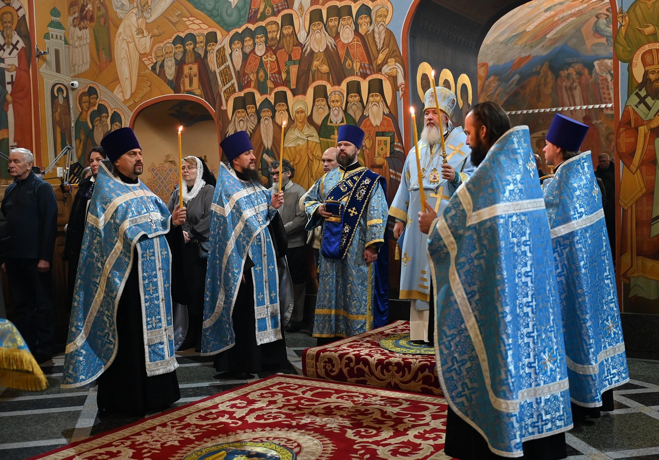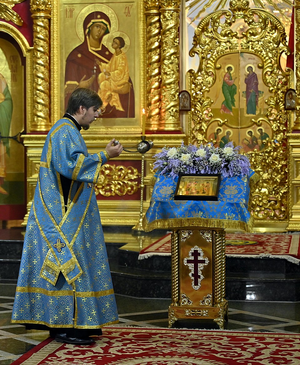 Всенощное бдение в канун праздника Введения во храм Пресвятой Богородицы архиерейским служением состоялось 3 декабря 2025 года в кафедральном Богоявленском соборе.