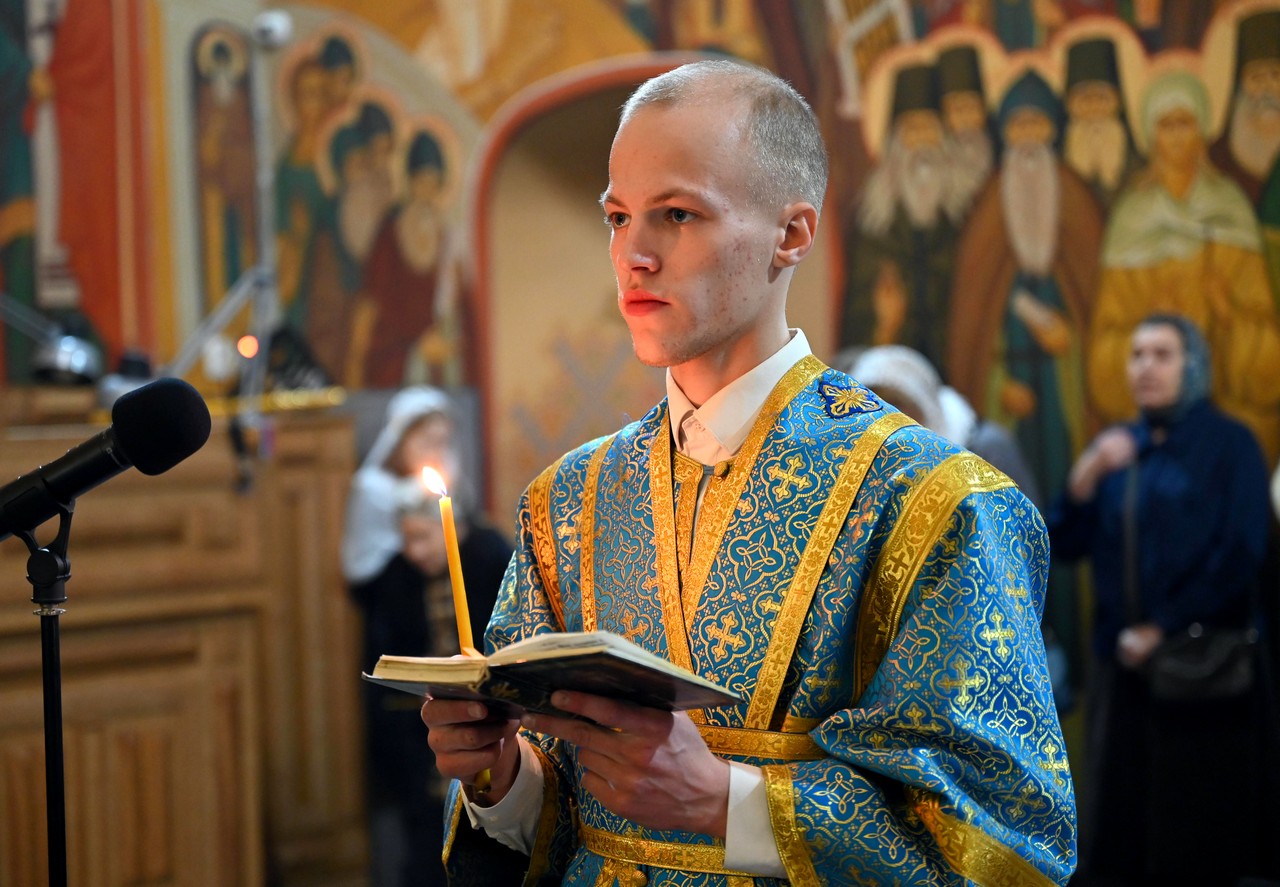 Богослужебные песнопения прозвучали в исполнении архиерейского хора Богоявленского собора под управлением регента Трофима Поподько.