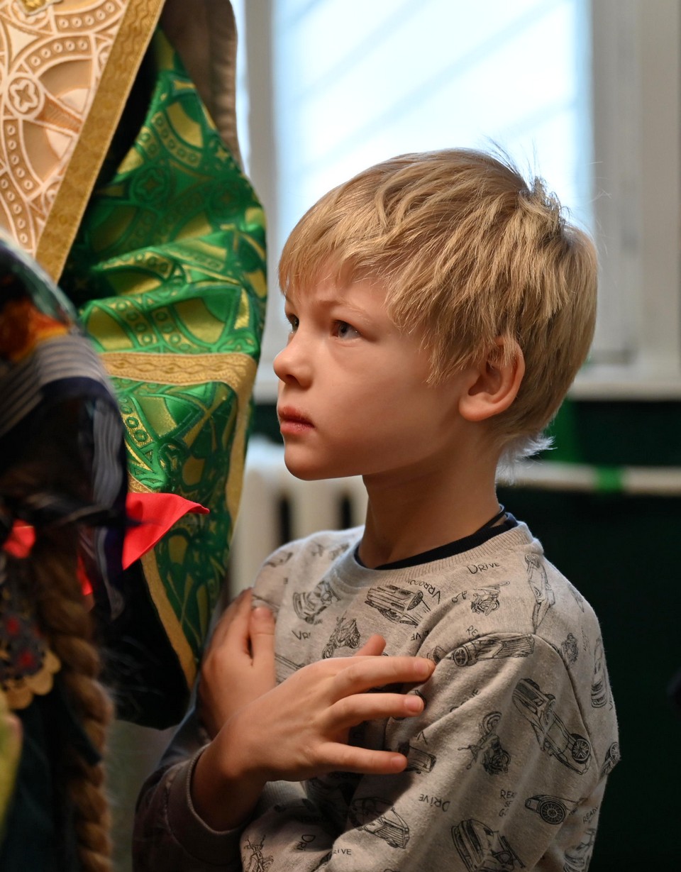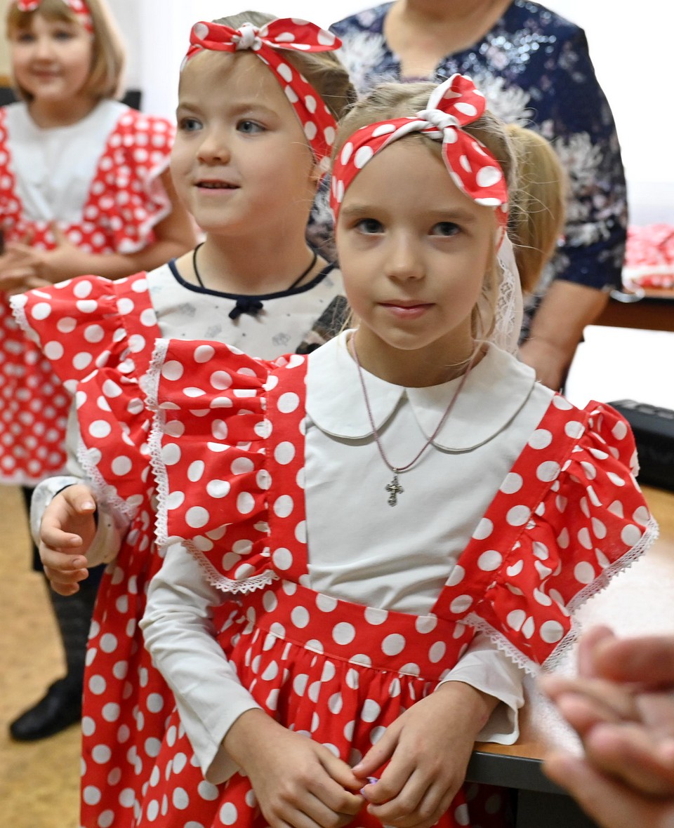 По завершении богослужения владыка посетил занятия в разных группах воскресной школы, где ребятишки подарили ему свои музыкальные умения.