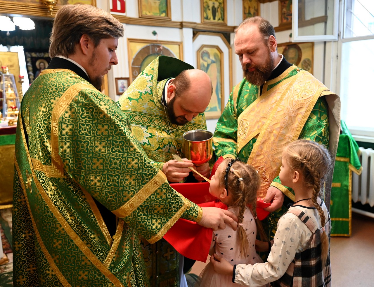 В проповеди перед Причастием священник Евгений Афонин, настоятель Воскресенского храма пос.Маркова, долгое время служивший в Александро-Невском храме, напомнил прихожанам о духовной помощи великого князя Александра Невского (в схиме Алексия) на протяжении разных веков русской истории.
