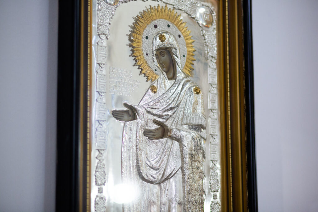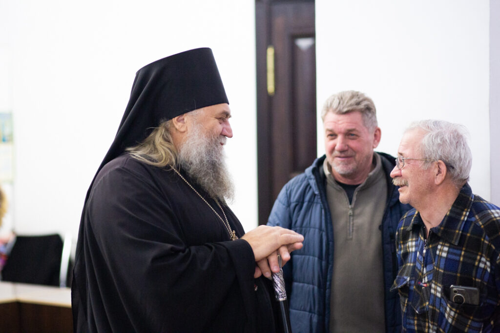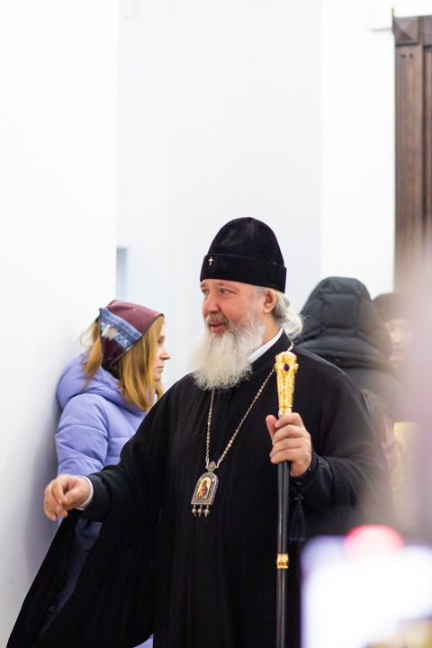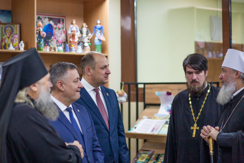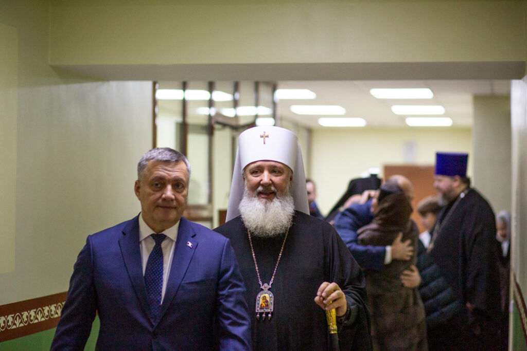 После Богослужения Игорь Иванович, Александр Сергеевич, Ольга Владимировна, владыка Максимилиан и владыка Константин прошли по храму и осмотрели помещения духовно-просветительского центра «Слово».