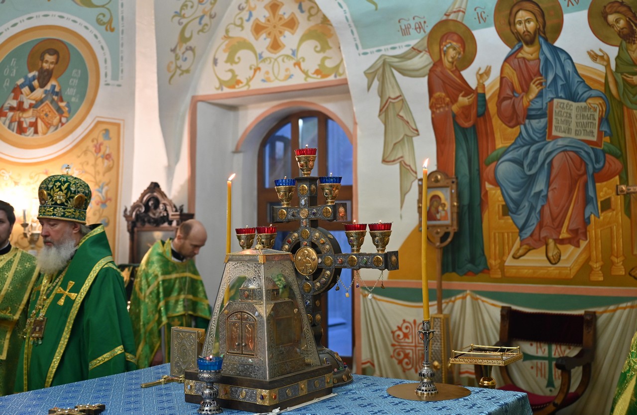 В проповеди перед Причастием игумен Феофан (Евтихеев) напомнил о фактах поразительного стояния пред Богом с малых лет и до конца жизни в преклонном возрасте преподобного Саввы, о плодах его трудов по развитию монашества, покровителем которого он по достоинству является.