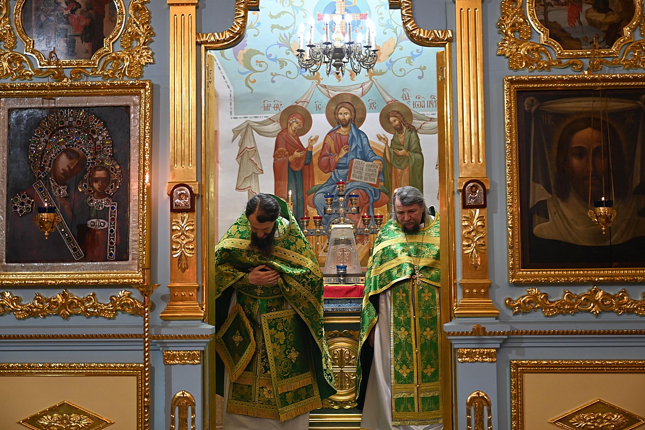 Молитвенные песнопения благоговейно исполнил епархиальный мужской квартет «Знамение» под руководством Трофима Поподько.