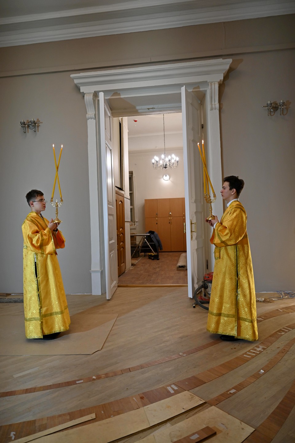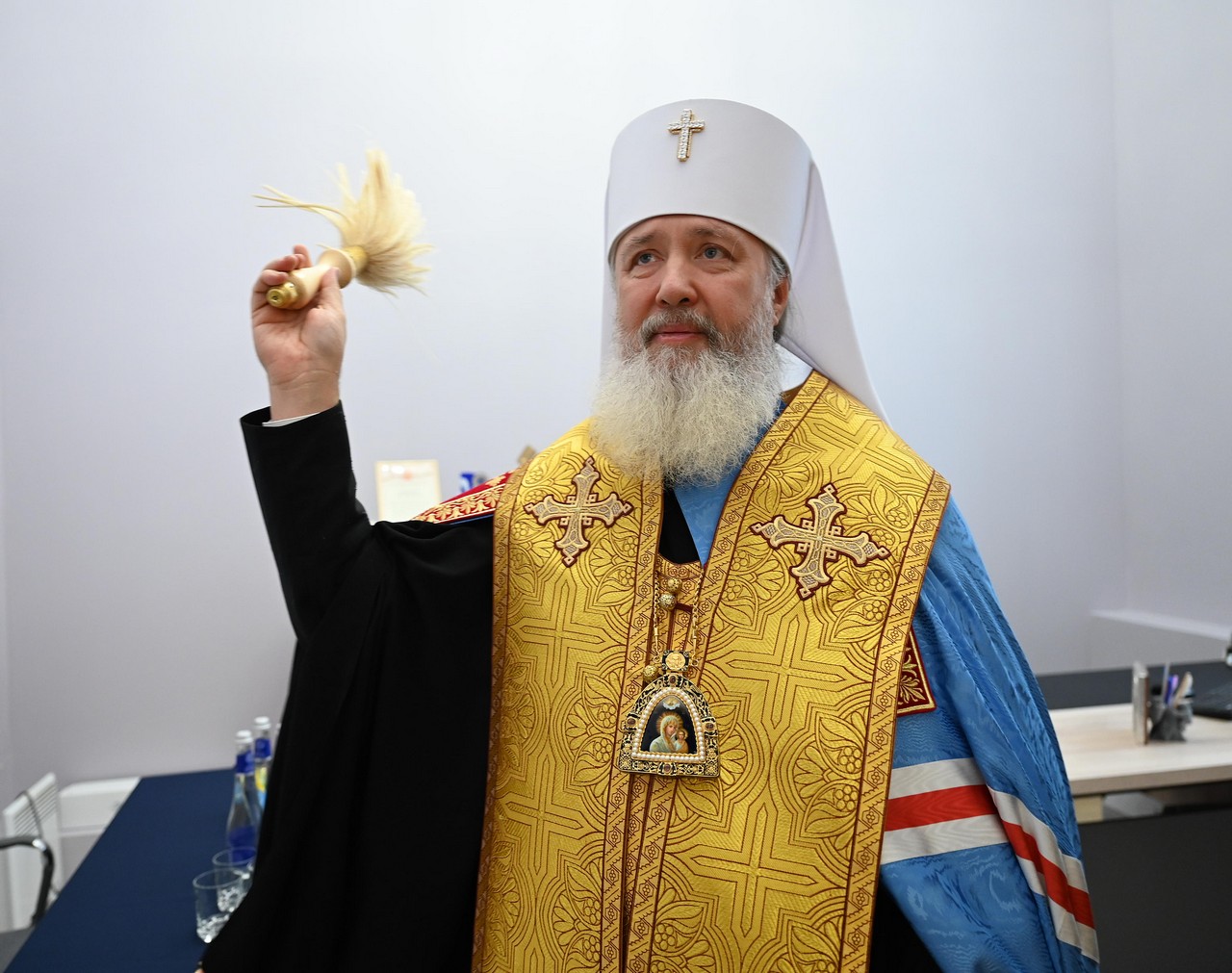 Владыка Максимилиан совершил молебен и окропил помещения отремонтированного здания святой водой.