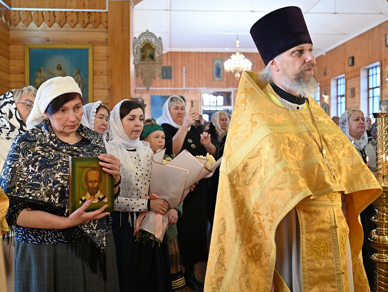 Приветствуя прихожан, владыка Максимилиан сердечно поздравил их с престольным праздником и отметил особое благоговение молящихся во время богослужения.