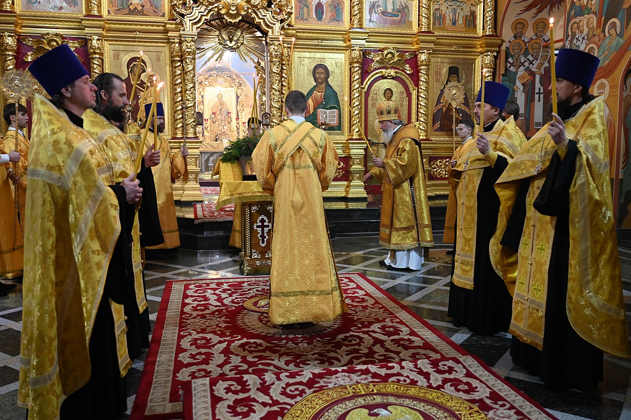 Высокопреосвященнейшему владыке сослужили секретарь Иркутской епархии, ключарь собора священник Стефан Бажков, протоиерей Андрей Тарасов, священник Евгений Копытов, священник Вячеслав Куприянов, протодиакон Димитрий Бухаров и диаконы Петр Новоселов и Сергий Кашурин.