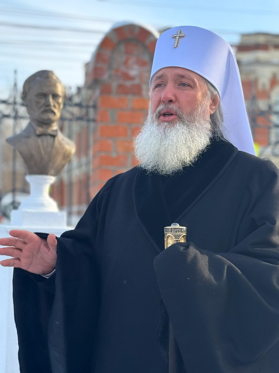 Владыка обратился к присутствующим с приветственным словом, в котором подчеркнул, что «цели и труды Павла Пономарева были устремлены не к земле, а к Небу», и мы, благодарные потомки, должны стараться увековечить память нашего знаменитого земляка, помнить о нем и молиться, а также, по возможности, восстановить прекрасную часовню, которая ранее была установлена над его могилой.