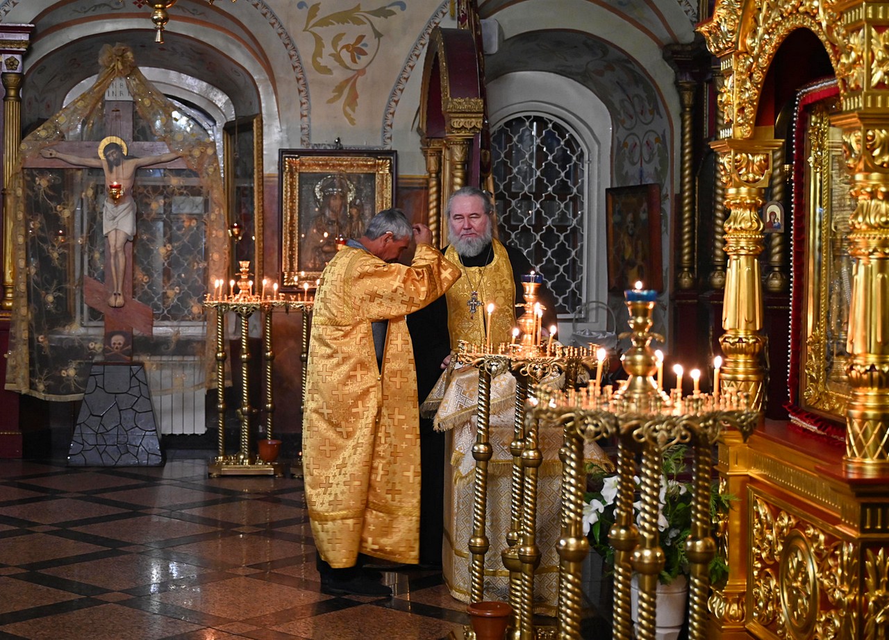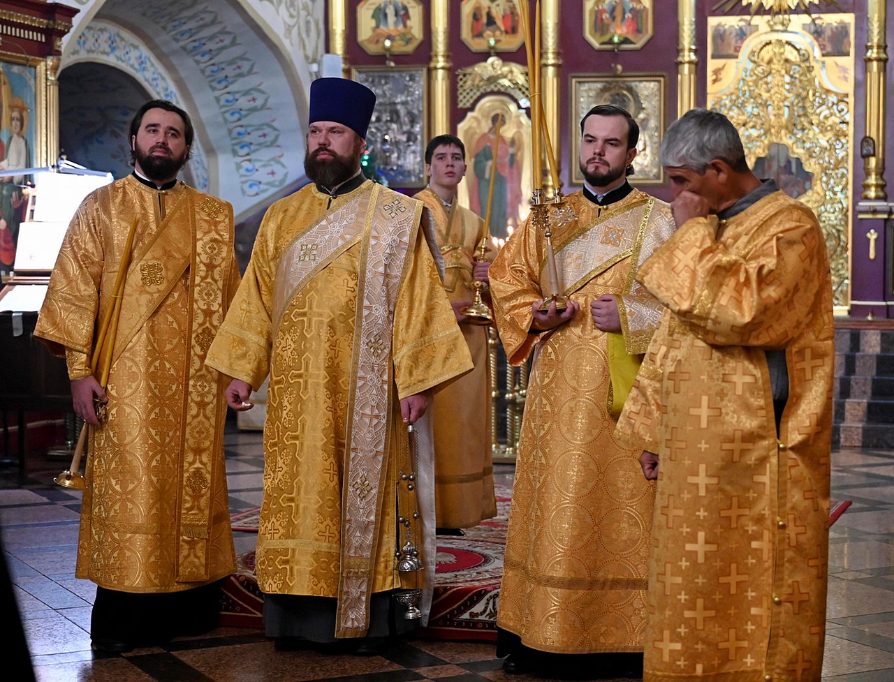 3 января 2026 года вечернее богослужение в канун Недели 30-й по Пятидесятнице, перед Рождеством Христовым, святых отец, митрополит Иркутский и Ангарский Максимилиан совершил в Знаменском соборе г.Иркутска в сослужении ключаря собора игумена Феофана (Евтихеева), секретаря Иркутской епархии священника Стефана Бажкова, священника Олега Исаева, иеромонаха Ефрема (Пашкова), священника Димитрия Давыдова, протодиакона Димитрия Бухарова, диаконов Прохора Огородникова и Владимира Соколова.