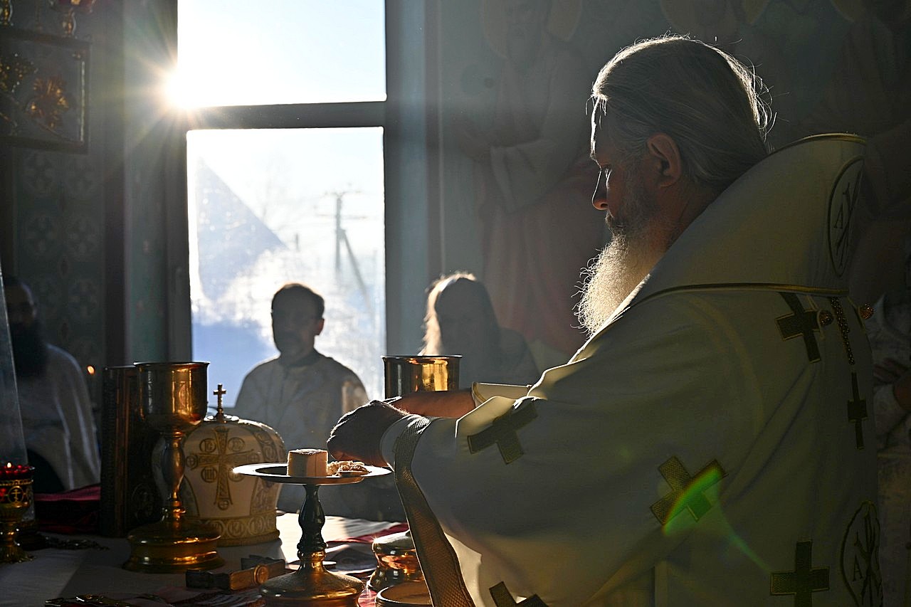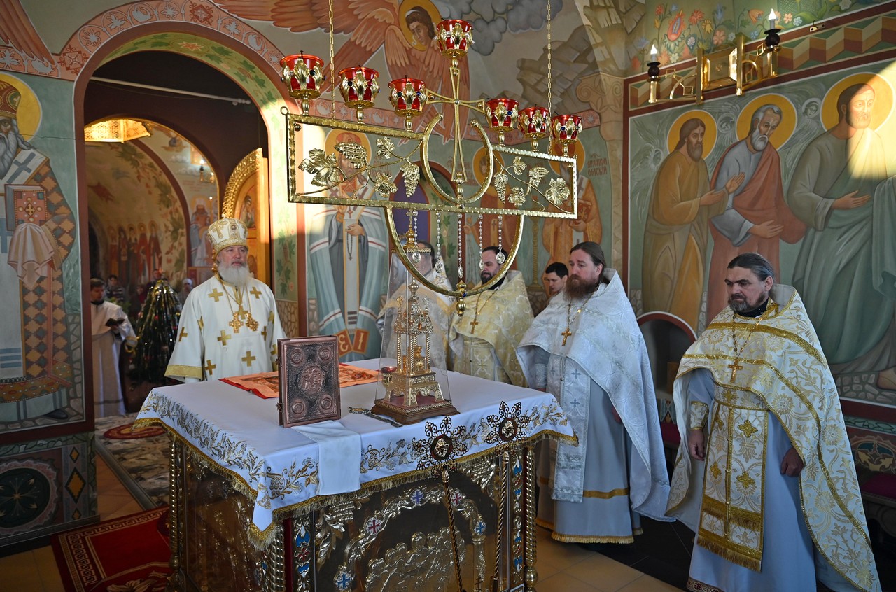 Божественную литургию в первый день Святок - праздник Собора Пресвятой Богородицы – 8 января 2026 года, глава Иркутской митрополии владыка Максимилиан совершил в благолепном Свято-Троицком храме села Хомутово.