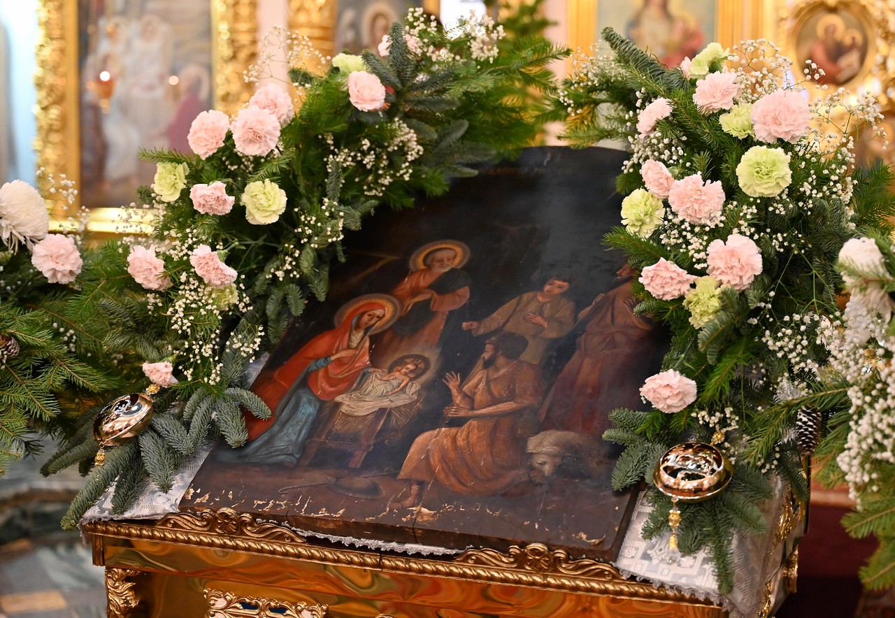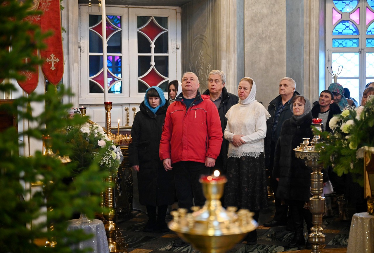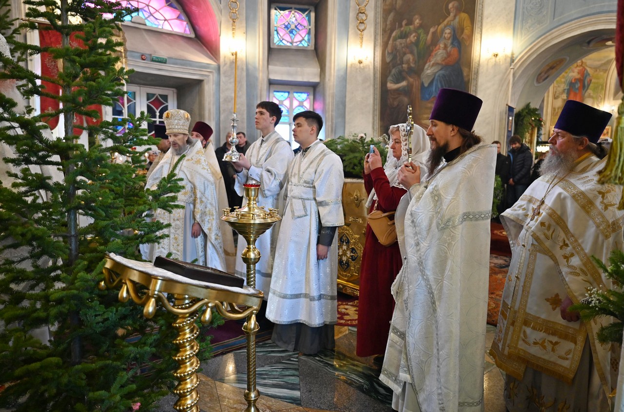 Настоятель храма протоиерей Сергий сердечно поблагодарил правящего архиерея за радость Литургии архиерейским служением и поздравил его с мироспасительным праздником Христова Рождества.