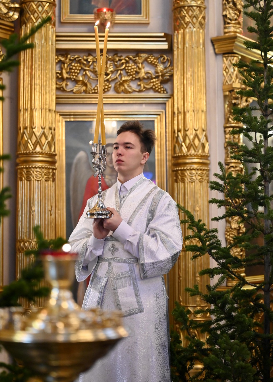 В словах проповеди, обращенной к прихожанам, настоятель храма протоиерей Сергий Кандыбин напомнил, что завтра Святая Церковь вспоминает первых мучеников за Христа - 14 000 Вифлеемских младенцев, которые были жестоко убиты по приказу царя Ирода, испугавшегося, что Рождшийся беззащитный Богомладенец заберет его власть. «И сегодня так же Христос мешает жить тому демократическому миру, который не желает слышать о Христе» и даже Его имя «изгоняет» из жизни и связанных с Ним событий и праздников, что совершенно изменяет их смысл и отдаляет от Бога. А без Христа нет ни радости, на Истины, ни спасения.