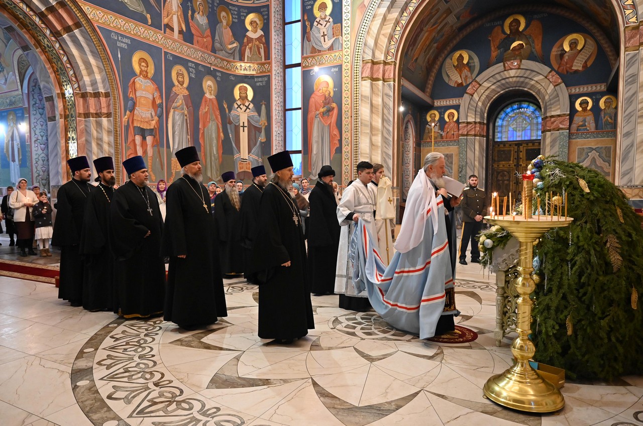 В день Отдания праздника Рождества Христова, 13 января 2026 года, архиерейское служение состоялось в храме святых апостолов Петра и Павла города Шелехова.