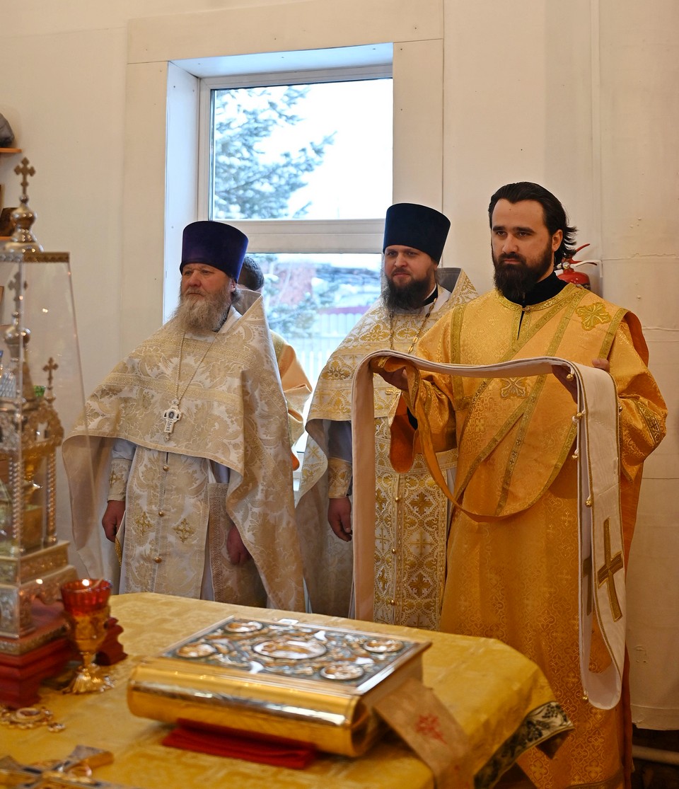 Его Высокопреосвященству сослужили: секретарь Иркутской епархии священник Стефан Бажков, благочинный Черемховского церковного округа протоиерей Николай Ершуков, настоятель Свято-Софрониевского храма г.Черемхово протоиерей Леонид Шевченко,  настоятель храма священник Сергий Соколов, настоятель храма во имя свв.блгв. князей Петра и Февронии священник Михаил Шевченко, протодиакон Димитрий Бухаров, диакон Петр Новоселов и диакон Владимир Соколов.