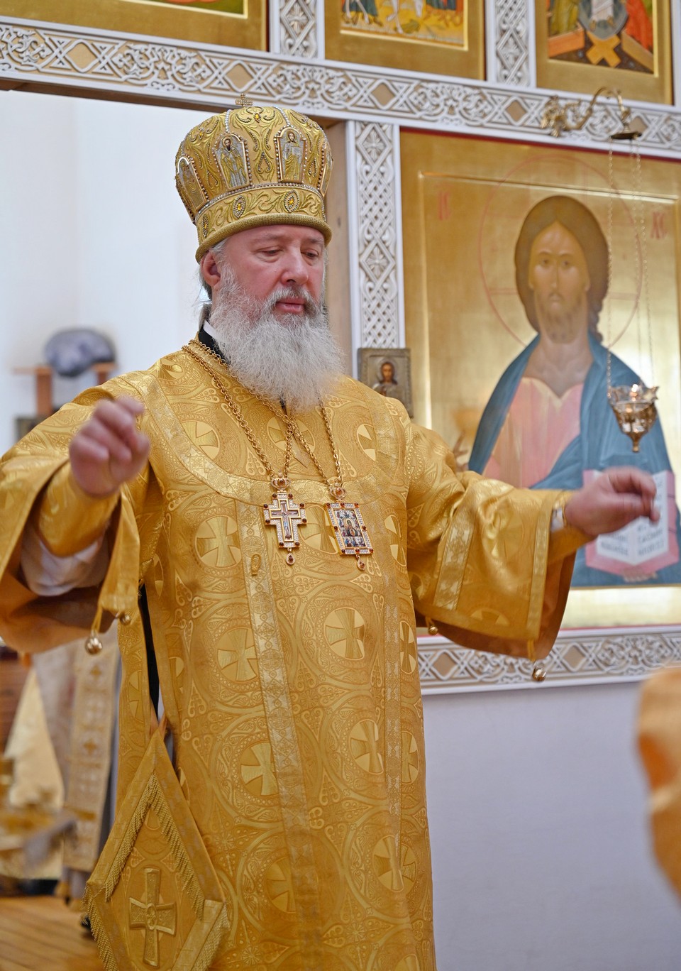 Поздравив пришедших с престольным праздником, владыка обратил внимание на то, что праздник Обрезания Господня показывает исполнение ветхозаветного закона, теперь же «другой принцип приобщения к народу Божию - это вера во Христа Спасителя», и других особых обрядов после Таинства Крещения уже не требуется, только жизнь по Заповедям Божиим в молитве и любви, о чем в своих трудах говорит нам святитель Василий Великий.