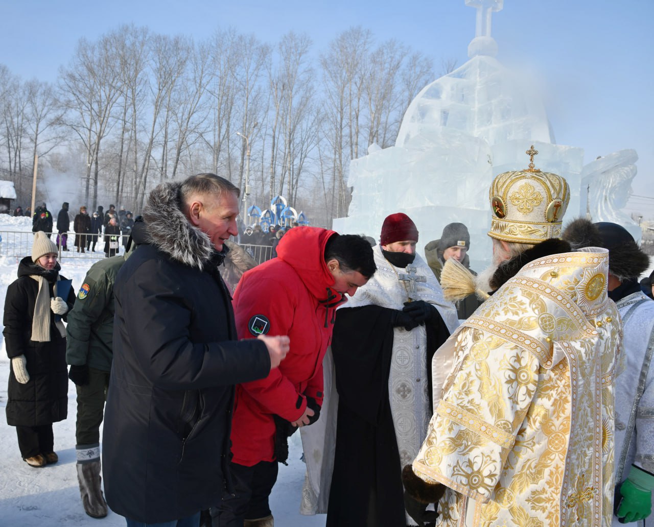 19 января 2026 года, в праздник Богоявления Господня, митрополит Иркутский и Ангарский Максимилиан на заливе Якоби в ледовом комплексе «Иордань» совершил чин Великого освящения воды.