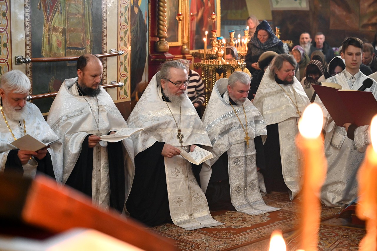 Песнопения акафиста прозвучали в исполнении клиросного хора собора под управлением Екатерины Телегиной.