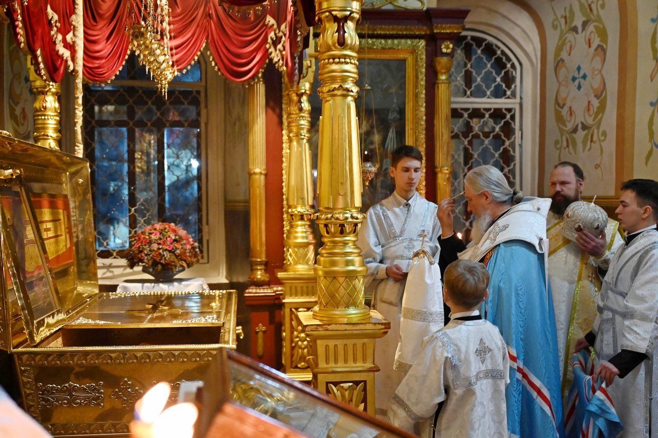 Традиционный акафист перед ракой с мощами святителя Иннокентия (Кульчицкого), Первого епископа Иркутского, в воскресный вечер 25 января 2026 года в Знаменском соборе возглавил правящий архиерей - митрополит Иркутский и Ангарский Максимилиан.