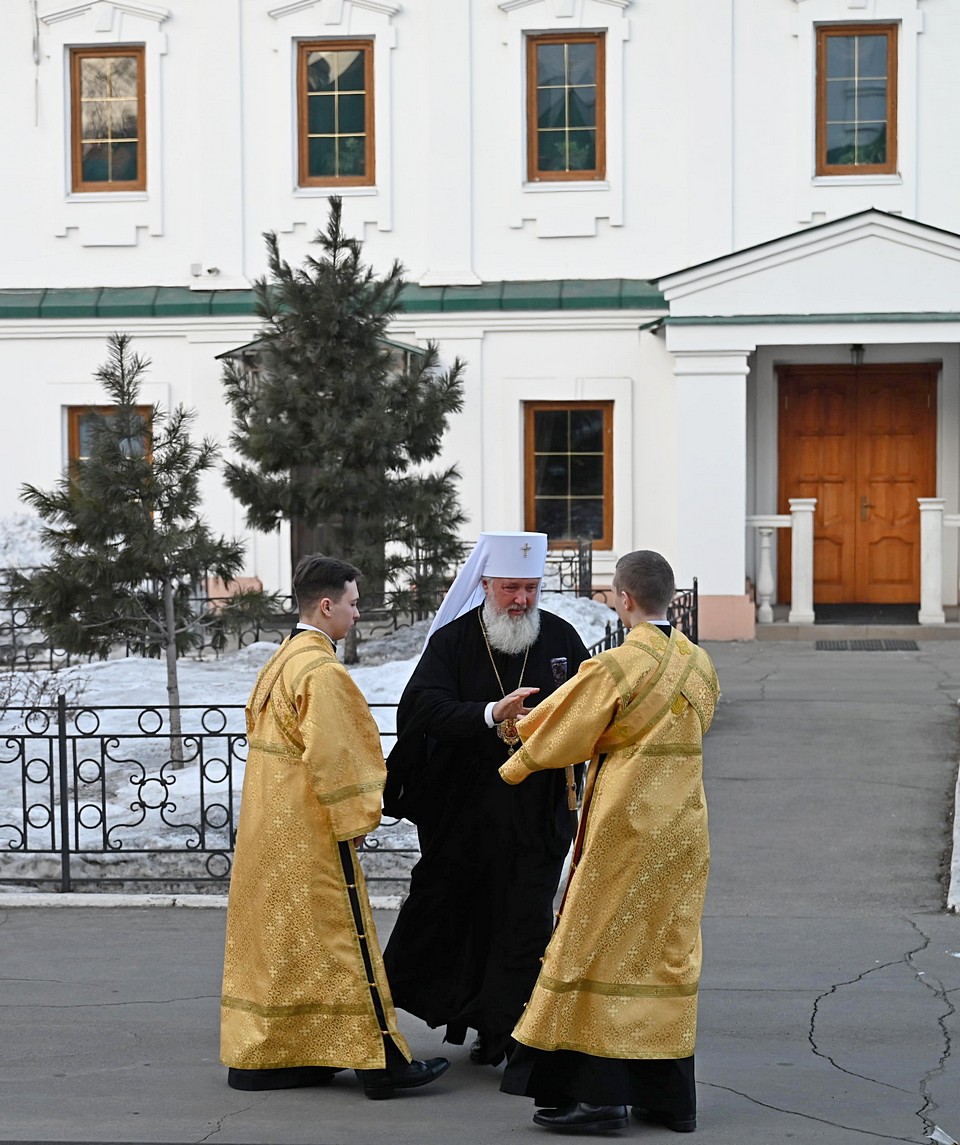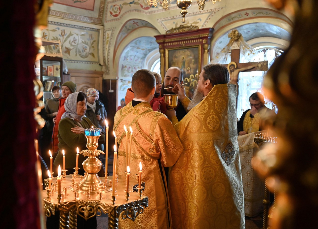 Песнопения Божественной литургии прозвучали в исполнении архиерейского хора Богоявленского кафедрального собора под управлением Ксении Званаревой.