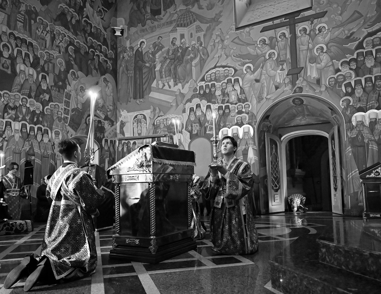 Высокопреосвященнейшему владыке сослужили ключарь собора, секретарь Иркутской епархии священник Стефан Бажков, протоиерей Андрей Тарасов, протоиерей Андрей Коробов, священник Григорий Гудин, священник Евгений Копытов и священник Вячеслав Куприянов.