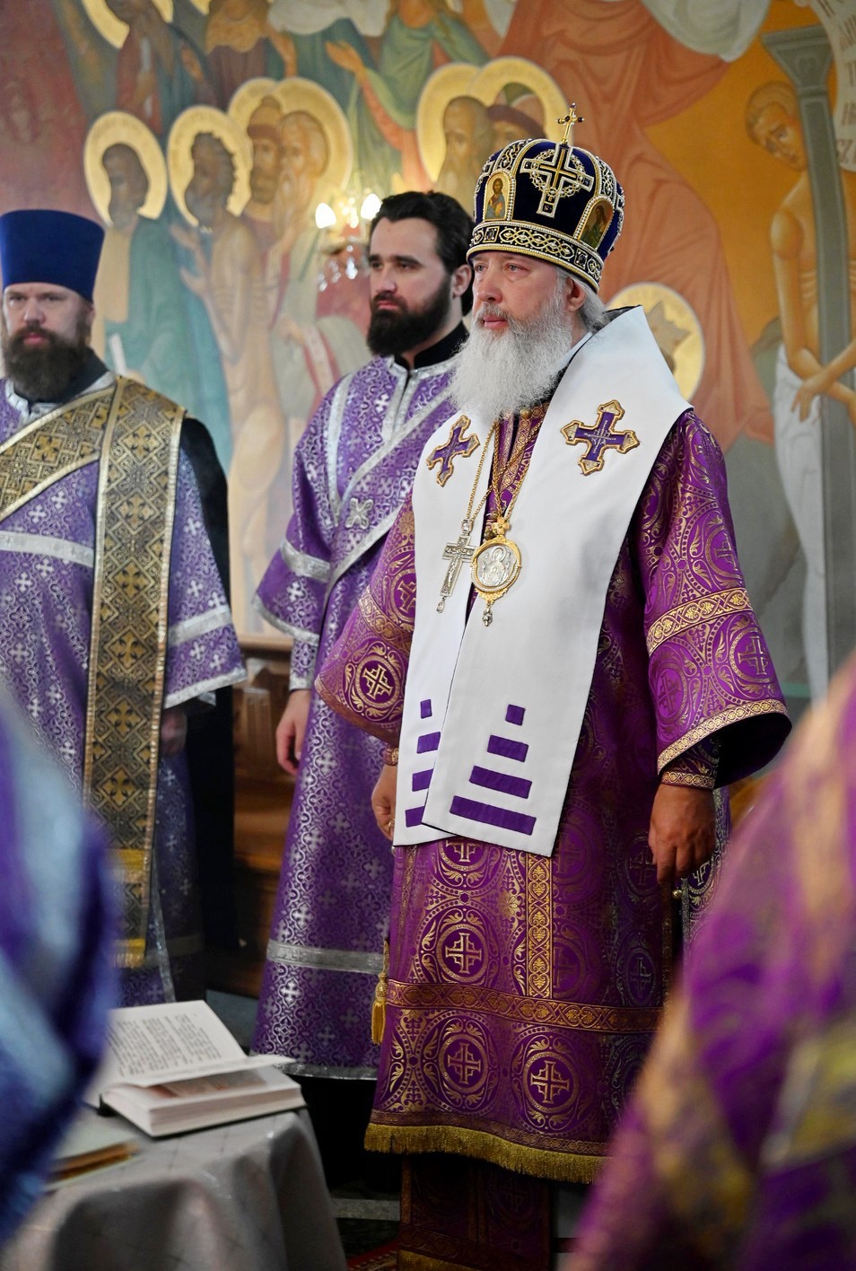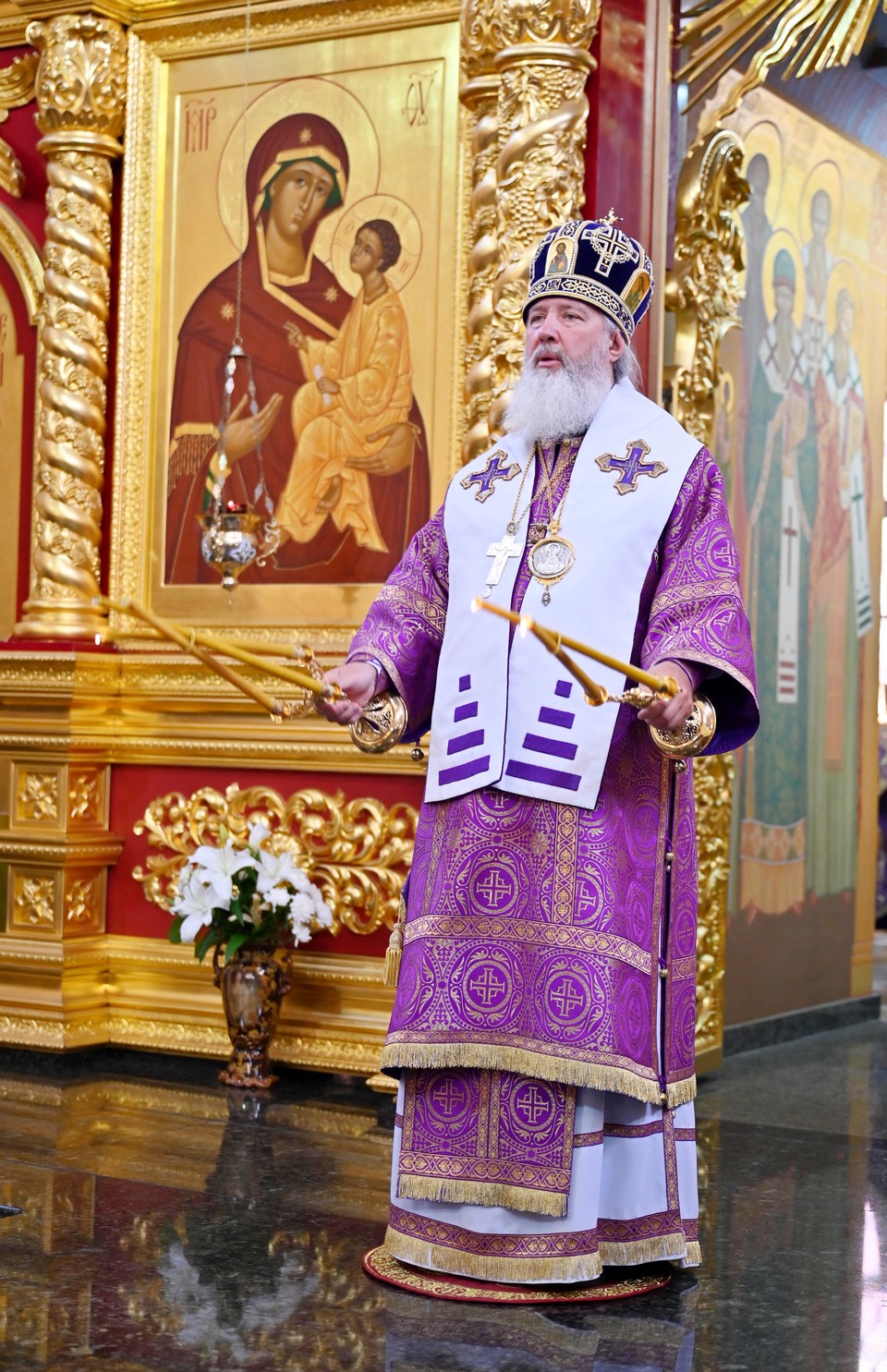 Высокопреосвященнейшему владыке сослужили ключарь собора, секретарь Иркутской епархии священник Стефан Бажков, протоиерей Андрей Тарасов, священник Григорий Гудин, священник Евгений Копытов, священник Вячеслав Куприянов и священник Евгений Евстягин.