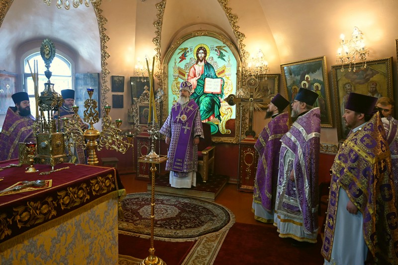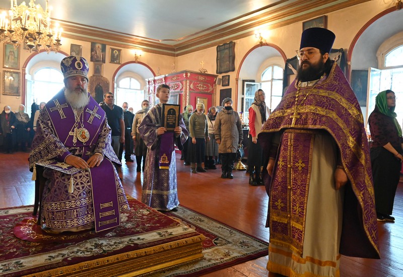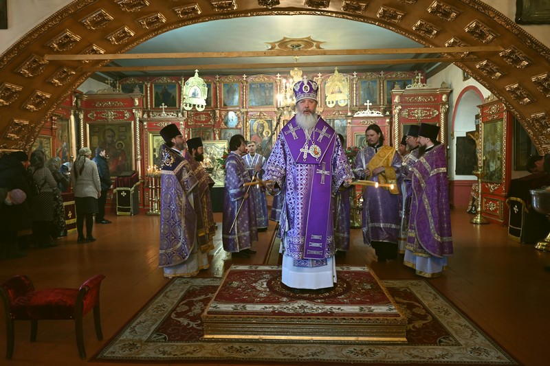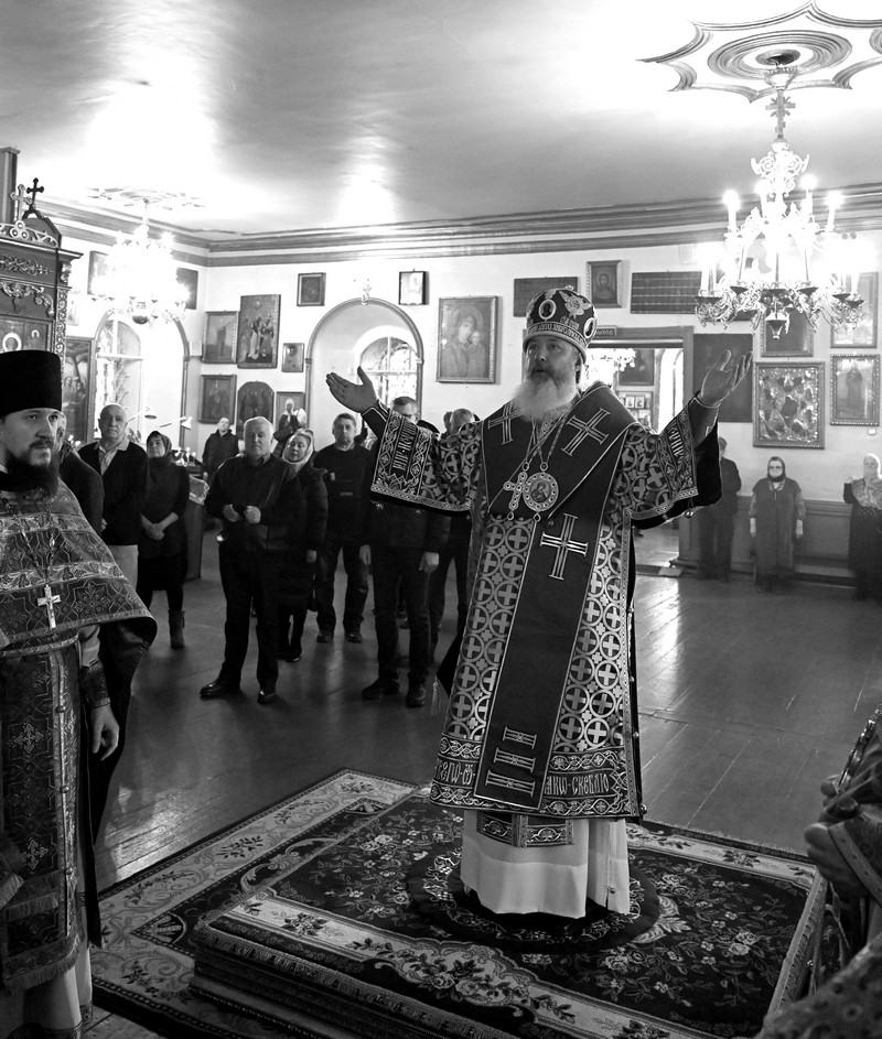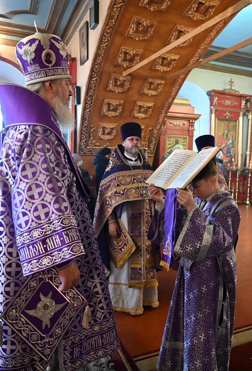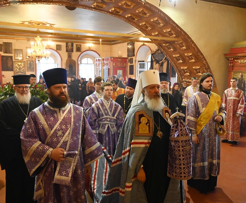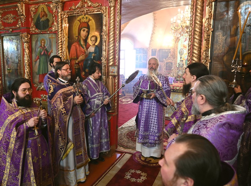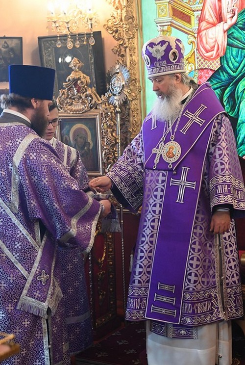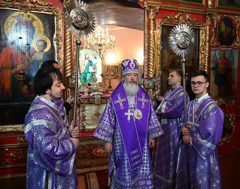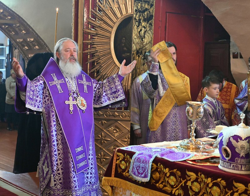 Также митрополит Максимилиан напомнил, что Крест Господень выносится сегодня на середину храма для укрепления духа и сил верующих и воодушевления их на поприще Великого поста.