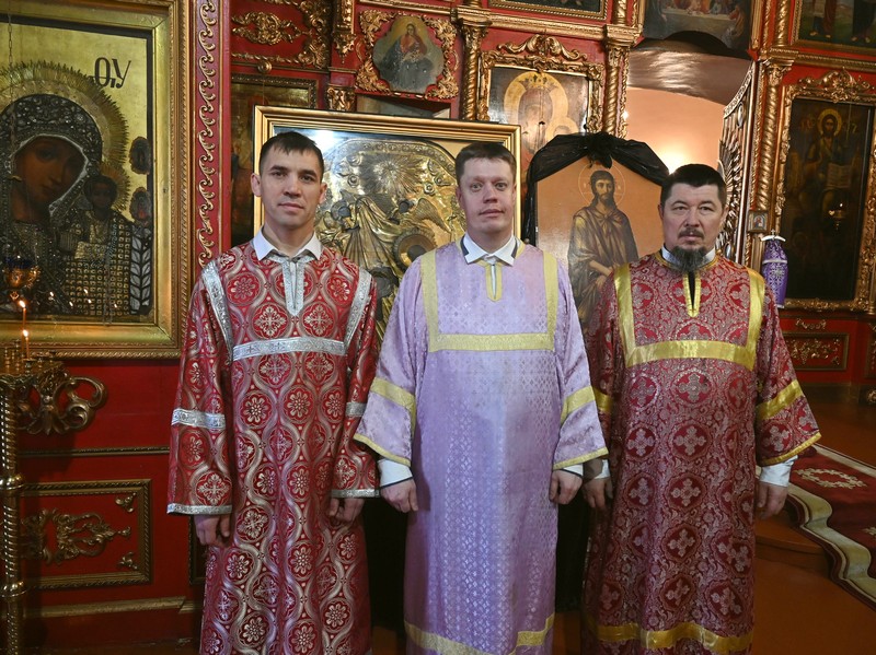 Его Высокопреосвященству сослужили: секретарь епархии священник Стефан Бажков, настоятель храма протоиерей Сергий Кульпинов, священники Олег Исаев, Григорий Гудин и Димитрий Старцев, протодиакон Димитрий Бухаров и диакон Сергий Кульпинов.