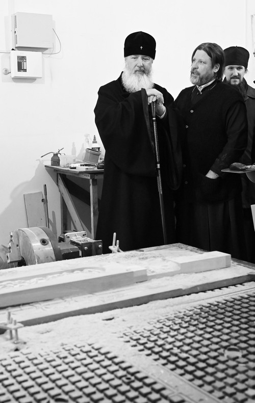 По завершении богослужения митрополит Максимилиан осмотрел, как проводятся ремонтно-реставрационные работы в главном приделе храма – Крестовоздвиженском.