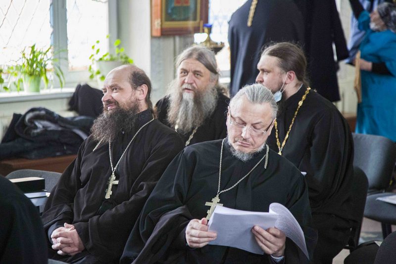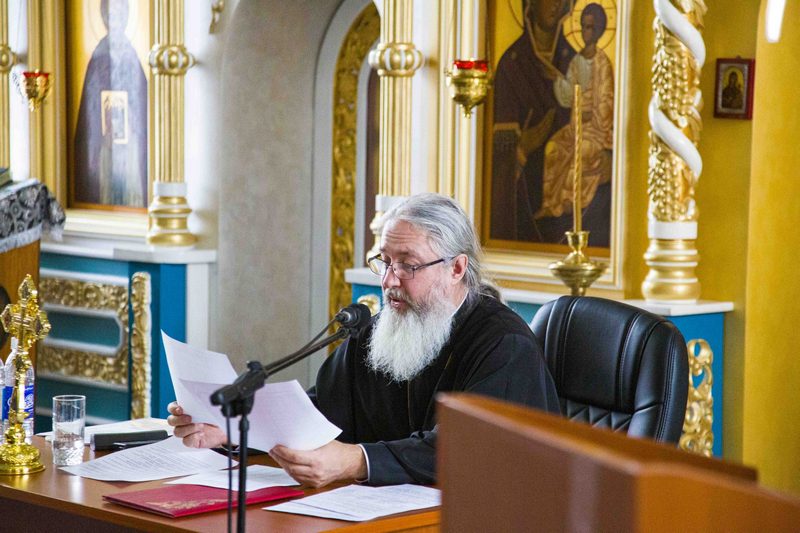 Далее был выслушан доклад руководителя епархиального отдела по пастырскому окормлению заключённых протоиерея Сергий Рубцова о деятельности отдела. Отец Сергий сообщил о проблемах и сложностях в окормлении заключённых в колониях поселения и о пастырском окормлении не только заключённых, но и сотрудников ГУФСИН.