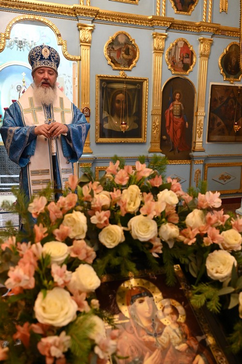 Божественную литургию в праздник Похвалы Пресвятой Богородицы в Знаменском монастыре возглавил правящий архиерей