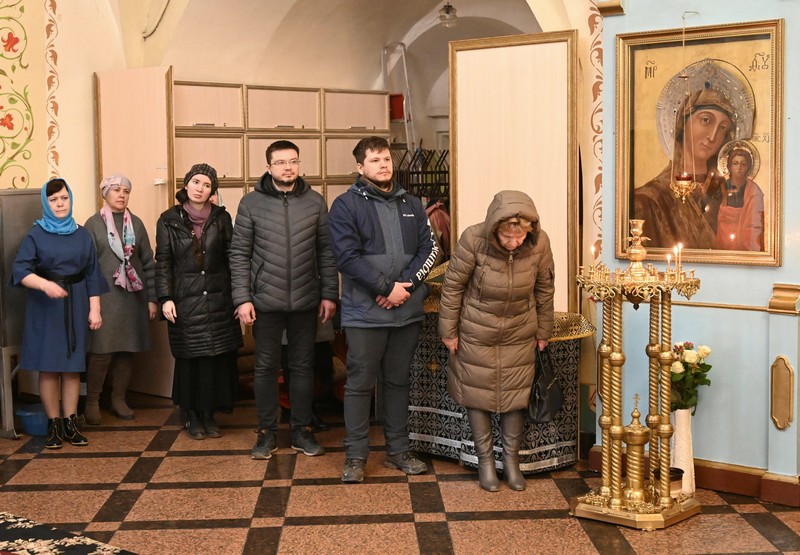 Поучительное слово перед Причастием обратил к прихожанам иеромонах Ефрем (Пашков), который рассказал об истории богослужения Субботы Акафиста, отметив поучительный урок исторических событий многих веков: «Государство и народ могут существовать только до тех пор, пока он хранит верность Богу, хранит верность Его святым Заповедям. Если народ принял крещение, если народ дал обеты Христу Богу, то должен соблюдать их до скончания века. Если же народ уходит на страну далече, Вера в народе угасает, то Господь может вначале пропускать какие-то скорби, нестроения, войны - всё для того, чтобы народ пришел в себя, опомнился. А если этого не происходит и люди продолжают упорствовать в своем нечестии и богоотсупничестве, то Господь просто стирает этот народ, это государство с лица земли - великое множество примеров этого мы видим в истории».