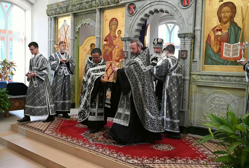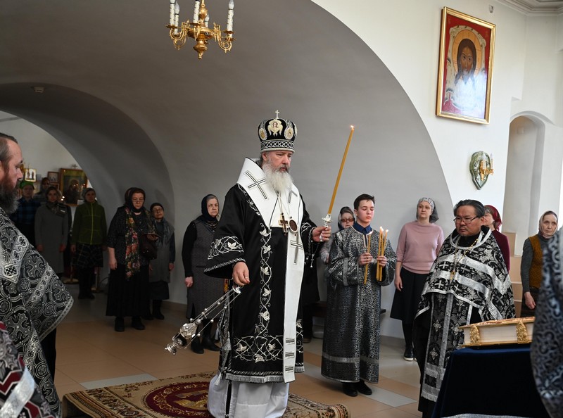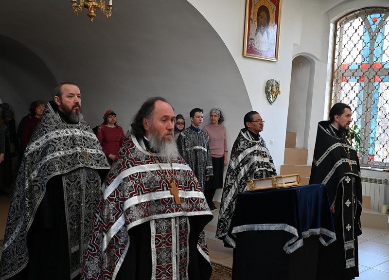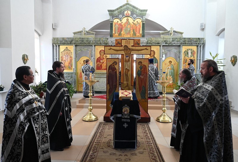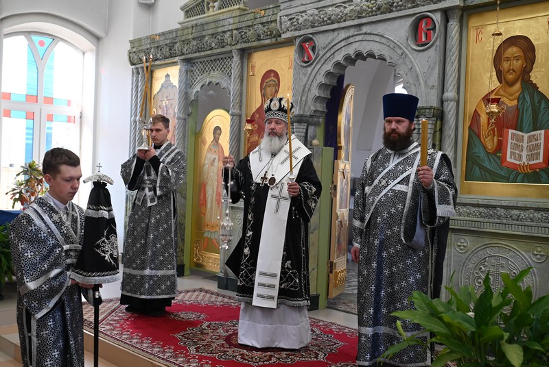 В воскресный вечер 10 апреля 2022 года в Свято-Преображенском храме города Иркутска состоялось последнее в этот Великий пост чтение акафиста Страстям Христовым (Пассии) и глав Евангелия от Иоанна, повествующих о Крестных Страданиях Господа нашего Иисуса Христа архиерейским служением.