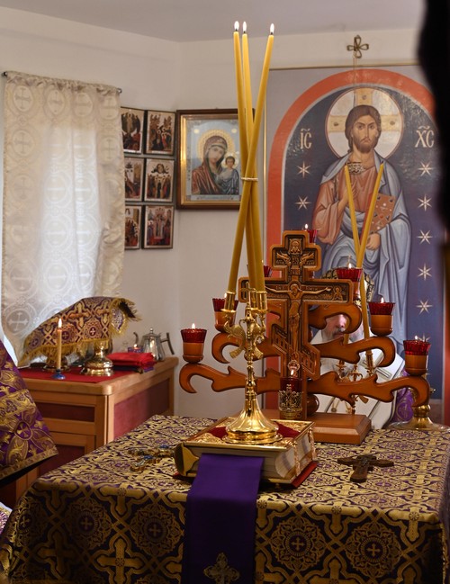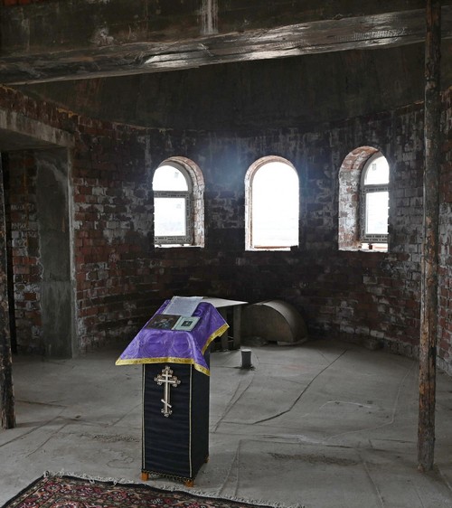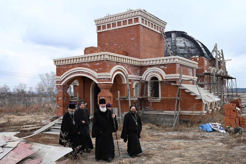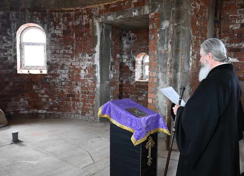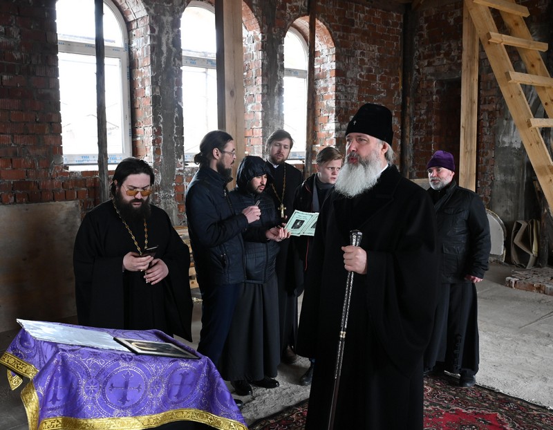 По окончании Литургии митрополит Максимилиан с сослужащими осмотрели здание строящегося храма, где была совершена молитва о помощи Божией в благополучном завершении строительства храма.