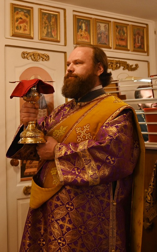 Проповедь перед Причастием произнес настоятель храма священник Григорий Гудин. Поздравив прихожан с престольным праздником и днем памяти святителя Софрония – третьего епископа Иркутского, отец Григорий отметил, что «святитель Софроний очень любил богослужение и любил, чтобы оно совершалось по Уставу», «понимал значение миссионерской деятельности на этой территории» и, «понимая, как сильно воздействует на людей архиерейскрое богослужение, он часто его совершал в разных местах, куда только удавалось ему добраться». Отец Григорий призвал всех «понимать значение святительского труда епископа Софрония: он заложил тот фундамент и посеял семя, после чего стало возможным строительство новых храмов и появление новых общин», он построил школу и заложил основу научению в христианстве жителей Сибири.
