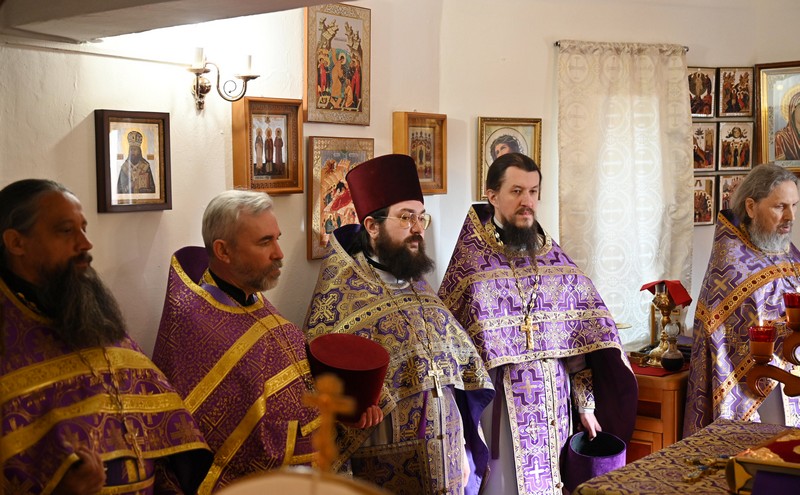 Правящему архиерею сослужили протоиерей Каллиник Подлосинский, благочинный 1 Иркутского районного благочиния протоиерей Герман Кузнецов, секретарь Иркутской епархии священник Стефан Бажков, настоятель Свято-Троицкого храма села Максимовщина священник Андрей Попов, настоятель прихода священник Григорий Гудин и протодиакон Димитрий Бухаров.
