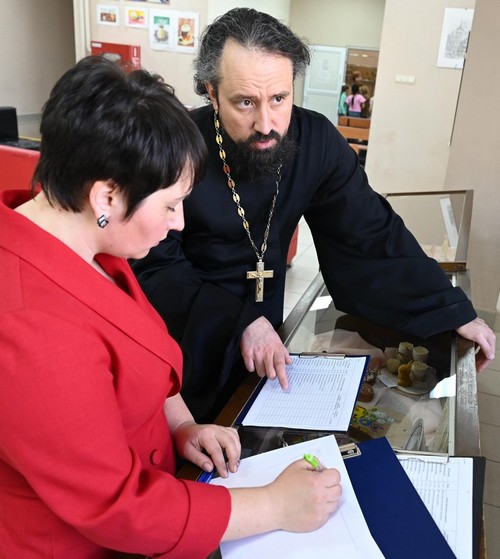 Выставку представили руководитель Комиссии по культуре Иркутской епархии протоиерей Павел Телегин и сотрудник Дома детского творчества № 5 Наталья Сергеевна Ленская, которая непосредственно занималась ее организацией. Во встрече приняли участие члены жюри конкурса Выставки:
