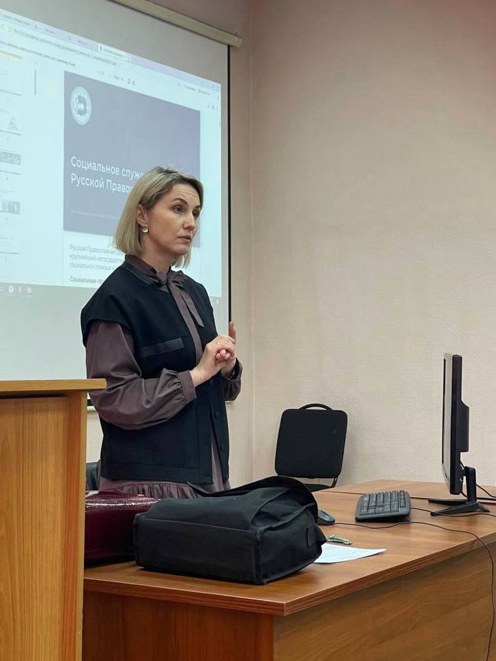 Евгения Александровна рассказала о структуре и устроении епархиальных отделов и подчеркнула важность и значимость высказывания апостола Иакова для каждого христианина: «Ибо, как тело без духа мертво, так и вера без дел мертва», - слова, которые не теряют силы уже более двух тысяч лет.
