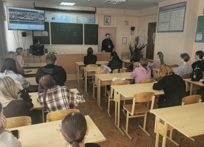 19 февраля 2026 года в Иркутском техникуме речного и автомобильного транспорта прошла встреча настоятеля храма Святой Троицы г. Иркутска протоиерея Димитрия Таланкина со студентами 2 курса.