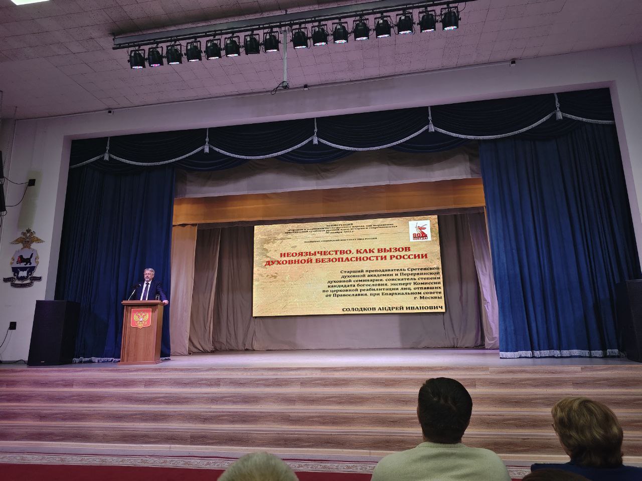 В выступлении на тему «Неоязычество: мифы и реальность» Андрей Иванович Солодков детально разобрал исторические предпосылки и современные формы распространения неоязычества, выделив его ключевые мифы и методы манипуляции сознанием. Андрей Иванович не просто читал лекцию, а вел живой, заинтересованный диалог, отвечая на вопросы педагогов и работников сферы образования.