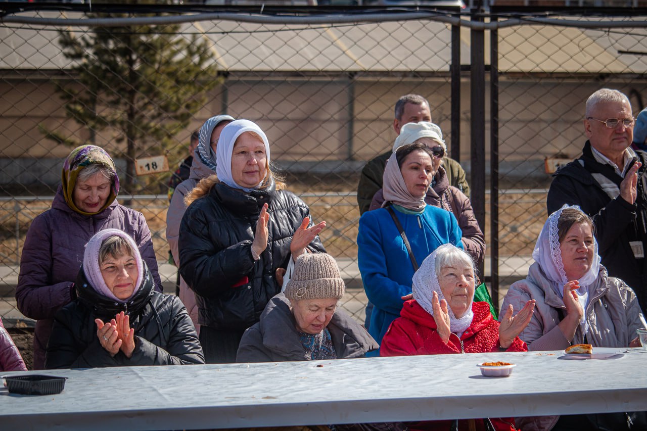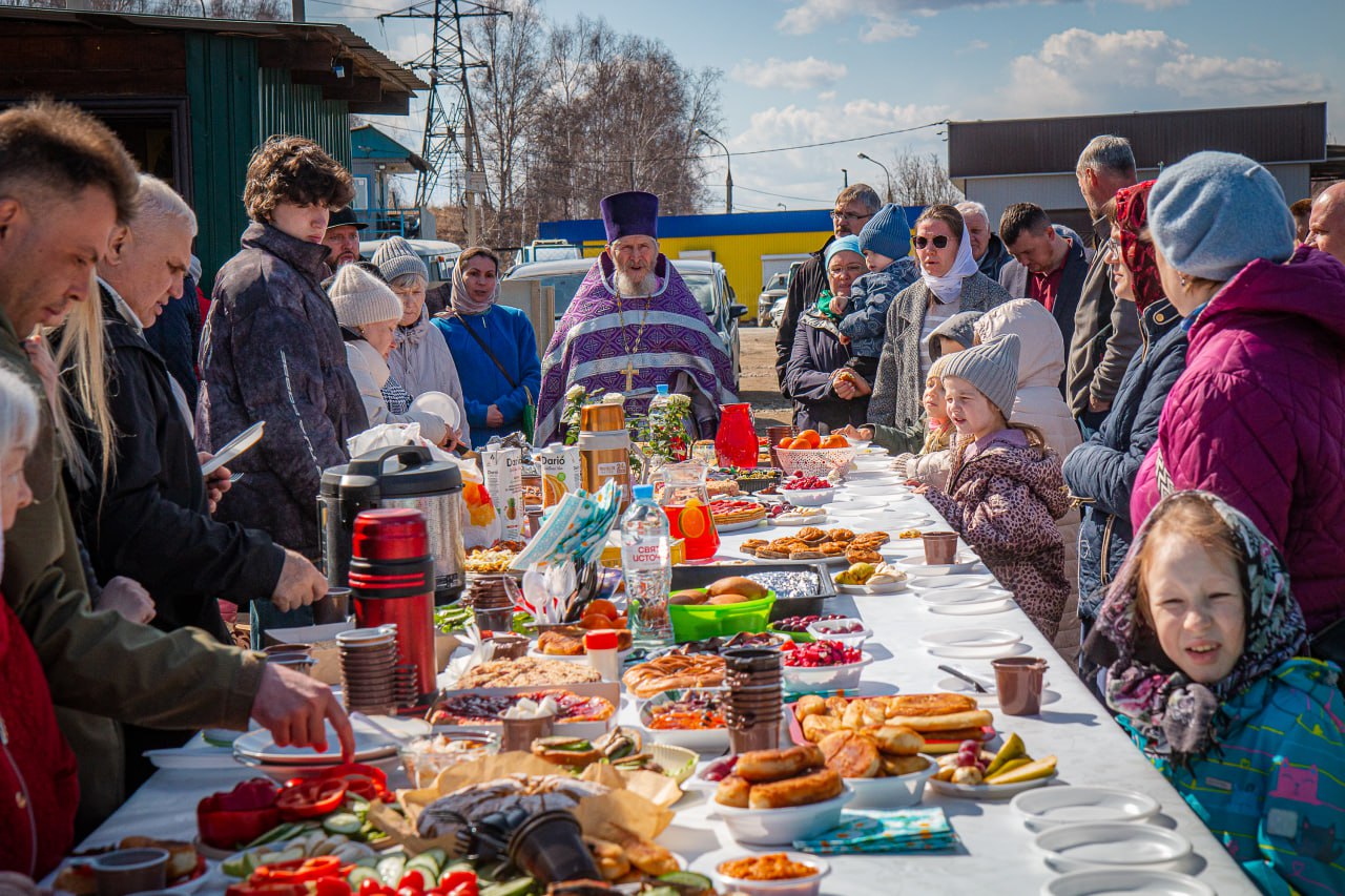 После богослужения все собрались на праздничный концерт, организованный силами прихожан и гостей из Свято-Пантелеимоновского прихода, и общую трапезу под открытым небом, которую собрали и накрыли все вместе, радостно и дружно.