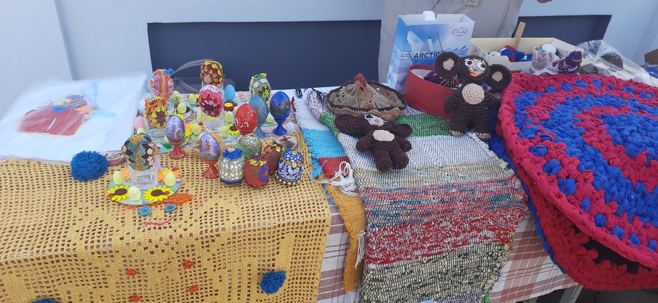 На ярмарке были представлены разнообразные сувениры: резные изделия из дерева, посуда, игрушки, декоративные яйца, тканые коврики, свечные наборы, плетёные изделия, домашняя выпечка собственного приготовления и многое другое. Кто-то выбирал подарки родным к Пасхе, кто-то – для дома. Интерес к подаркам ручной работы оказался достаточно велик - большинство товарных позиций быстро нашли своих счастливых обладателей.