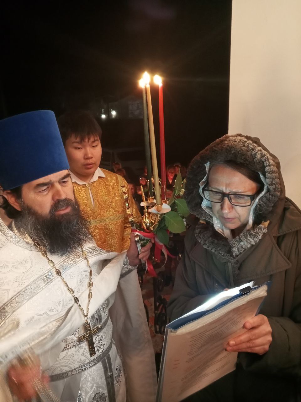 Накануне Пасхи, в Великую субботу, на приходе в честь мучеников Флора и Лавра в поселке Бозой отцом Николаем была отслужена Божественная литургия, освящены куличи, пасхи, яйца. Священник в этот же день посетил дальнюю точку Эхирит-Булагатского района - село Ахины, где встретился с жителями и освятил пасхальную снедь.