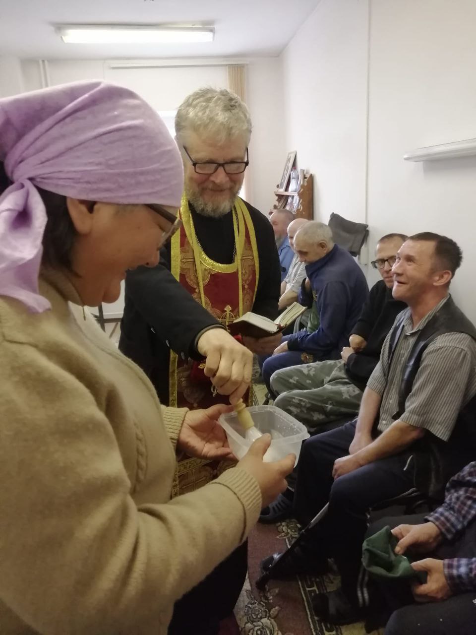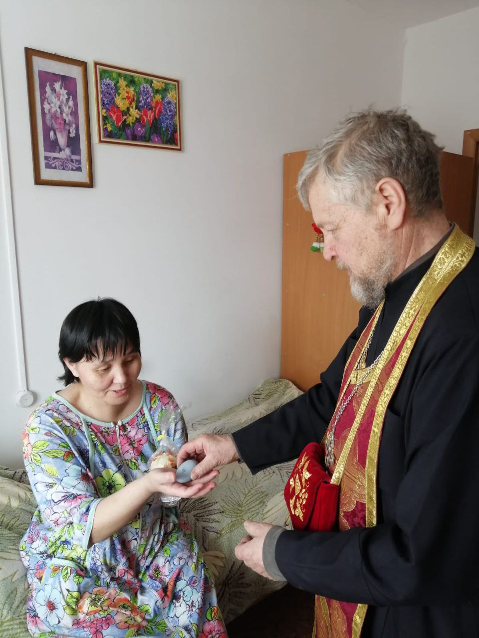 Второй клирик Усть-Ордынского храма, священник Павел Гладков, в Усть-Ордынском Доме-интернате для престарелых и инвалидов освятил для проживающих и обслуживающего персонала куличи и яйца. Исповедовал и причастил подготовившихся к этому Таинству людей. Прихожане храма вручили жильцам пасхальные подарки.