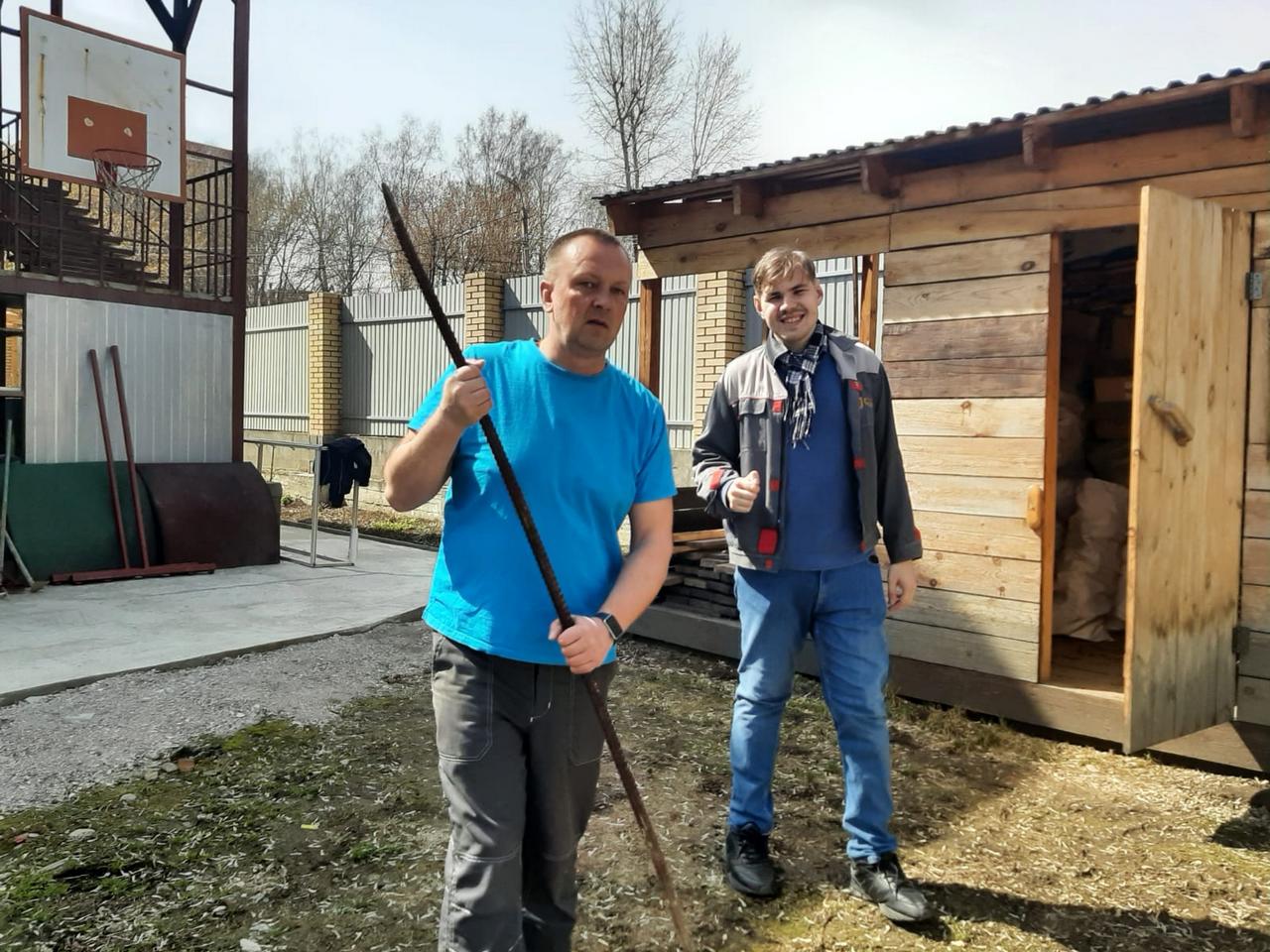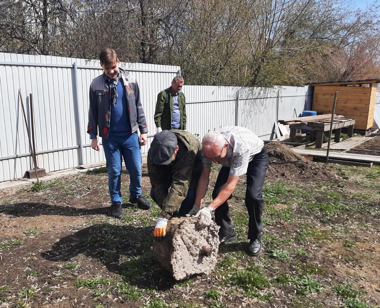 Для каждого нашлось дело. Мужчины выполнили тяжёлую работу, которую ребятам выполнить не по силам. Восемь помощников прокопали канал для отвода воды, отсыпали клумбы, рассортировали доски и убрали огромный камень. Пригодились полученные ценные консультации по благоустройству территории и строительным работам.