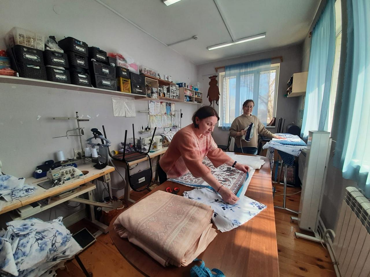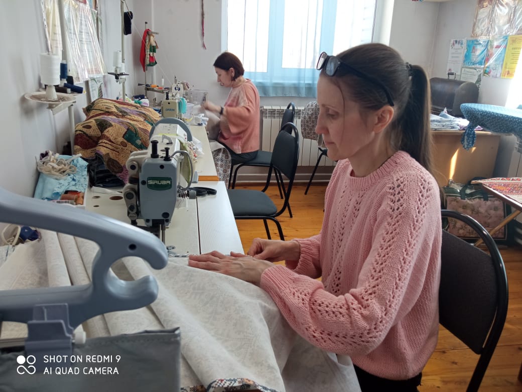 Швейная мастерская открыла свои двери для женщин, которые пошили наволочки и полотенца.