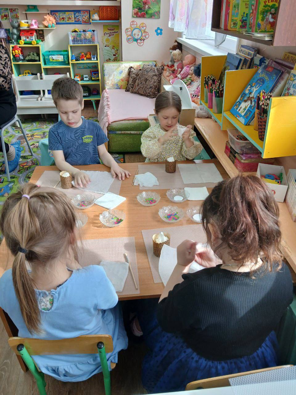 Кроме того, дети с родителями рисовали рисунки, изготавливали поделки на тему «Пасхальная композиция».